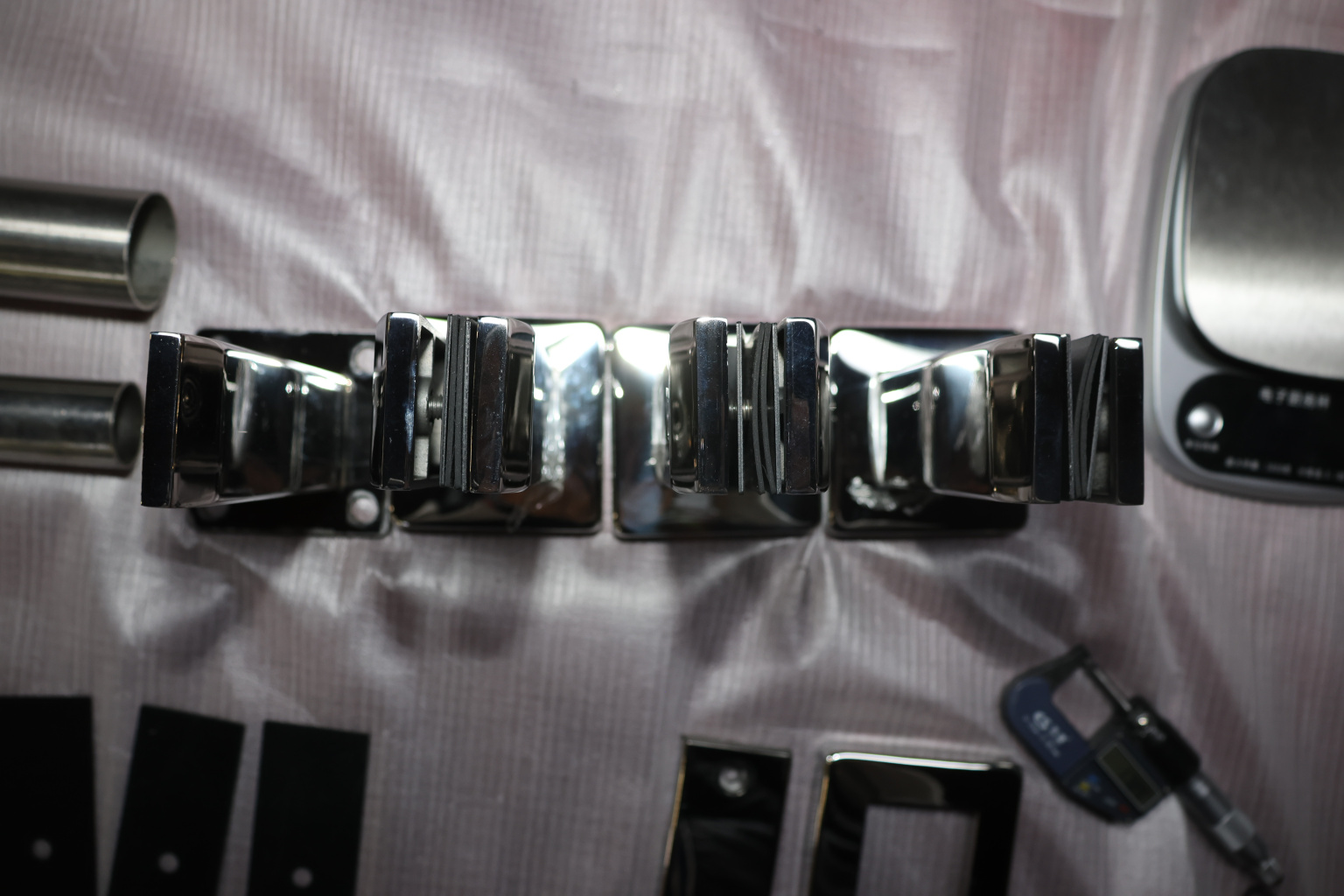 Стеклодержатель пластинчатый 3хМ8, по центрам 170х5 мм, полированный, шайбы 5 мм штамп., под стекло 6-12 мм, AISI 316 k023-8
