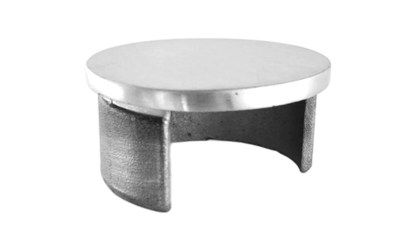 Применяется для аккуратного завершения и красивого закрывания торца трубы Ø48.3 мм поручня лестничных перил на объектах с несущим стеклом.