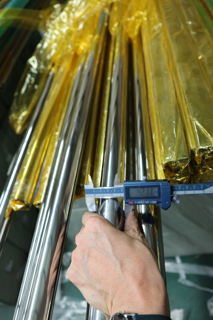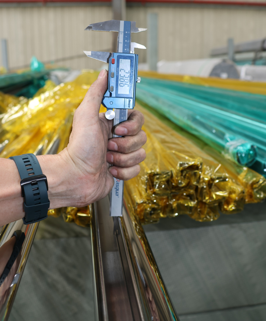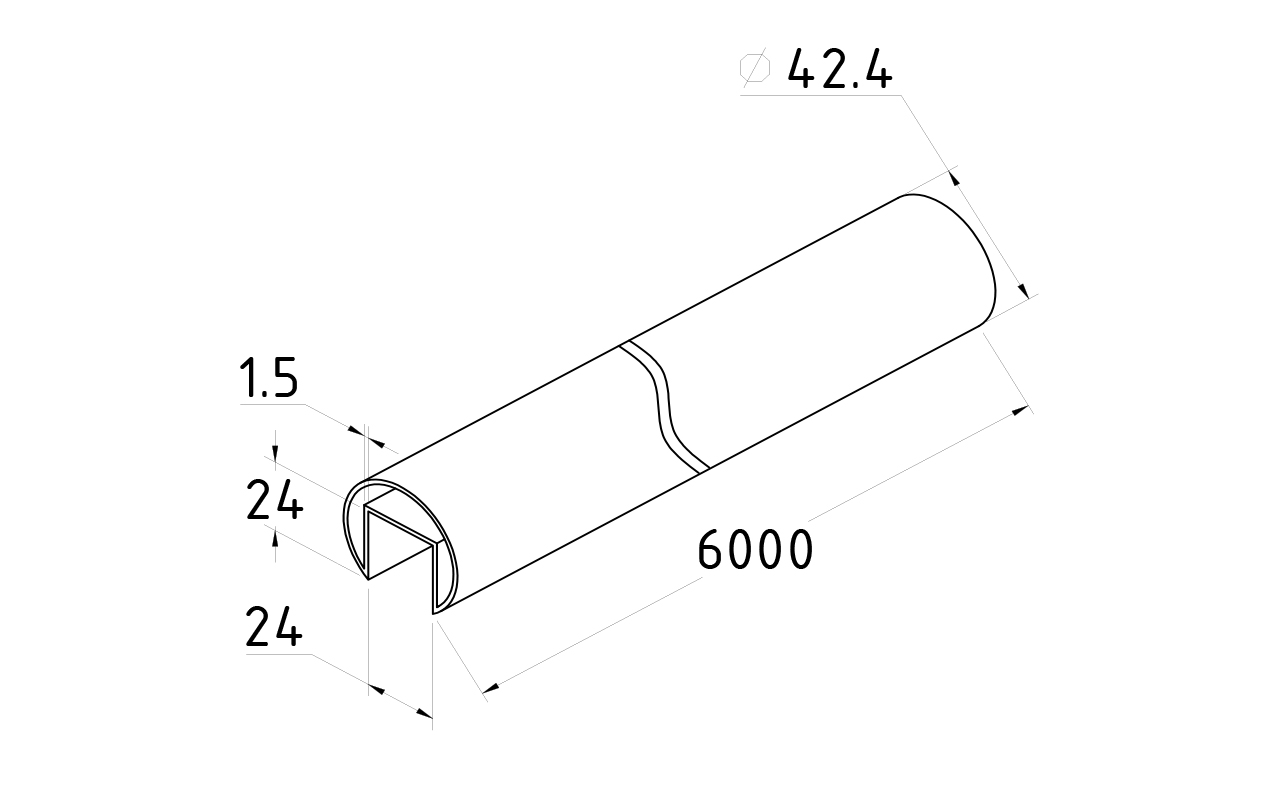 Труба Ø42.4 мм, с пазом 24х24, тройная полировка 800GRIT, (AISI 201) k820