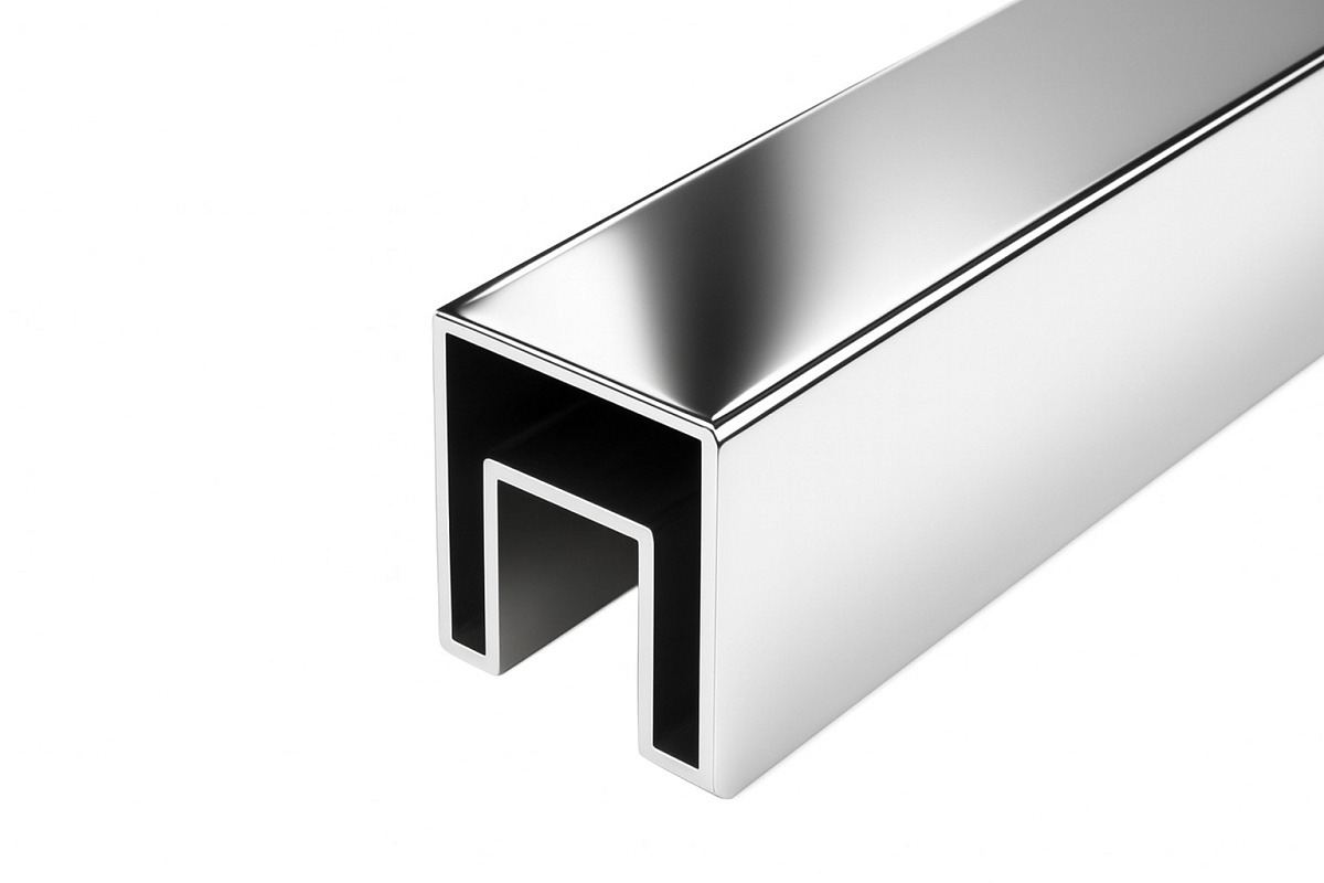 Труба 40х40 мм с пазом 24 х 24 под стекло, AISI201 #600 k856-3
