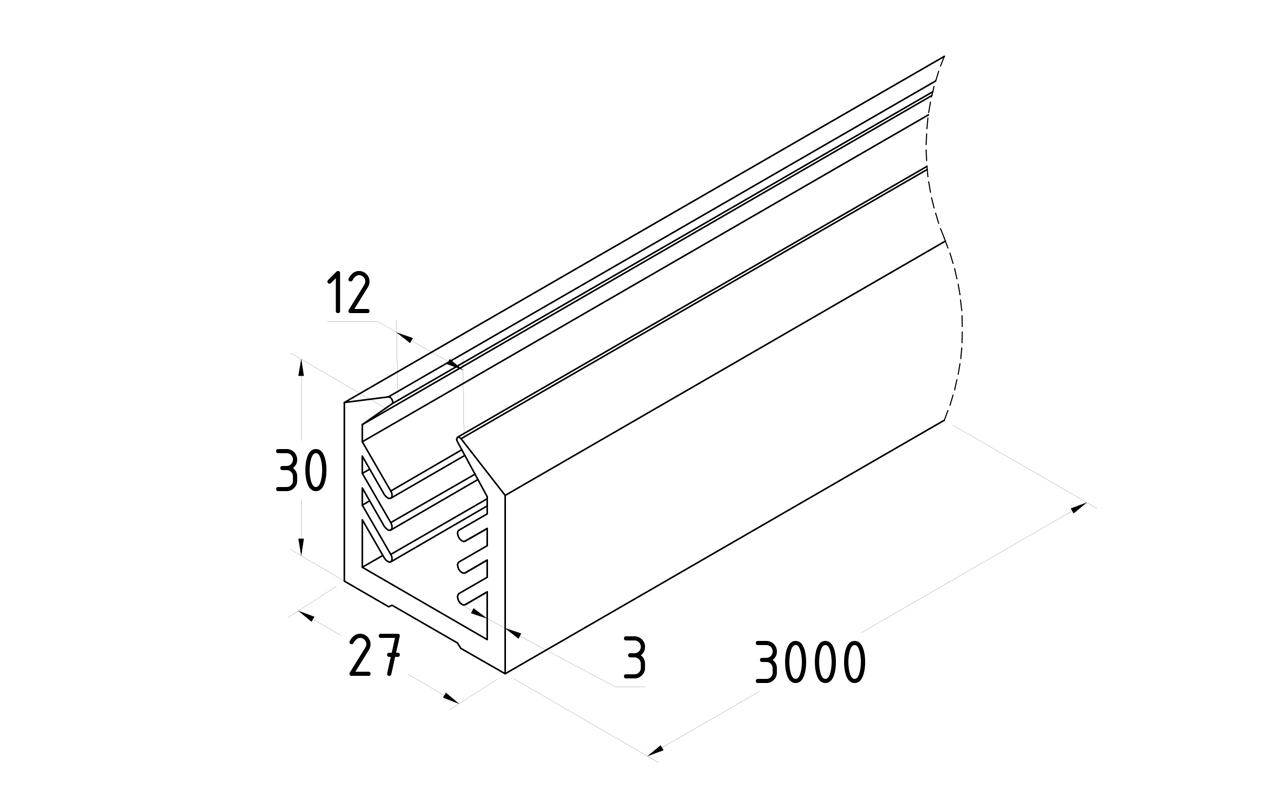 Уплотнитель в поручень с пазом 27х30 для стекла 12мм, EPDM СЕРЫЙ