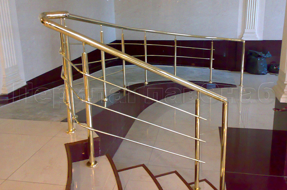 Покрытие нитрид титаном по внешнему виду не отличить от золота! Устойчиво к воздействию воды, не подвержено коррозии. При механическом воздействии проявляет себя лучше, чем простая нержавейка. Покрытие наносится на деталь из 304 марки стали. Ограждение, выполненное под этот драгоценный металл не может не привлекает внимание! Смотрится богато и изящно, придавая дополнительную ценность всему ограждению в целом.