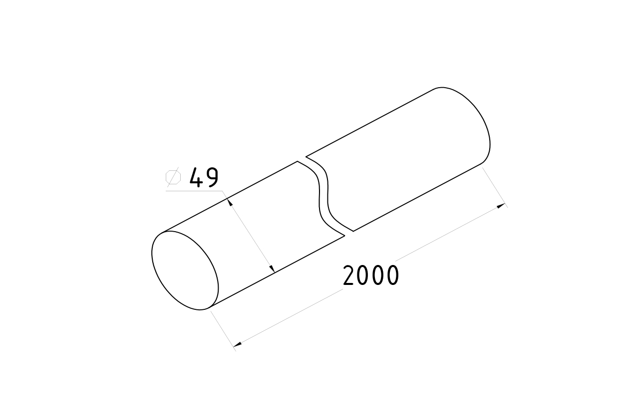 Хлыст из ламелей дуба, склеенных продольно и часто сращенных поперечно на минишип, длиной 2 метра и диаметром 49 (±1) мм, обработанный, шлифованный, под покраску.