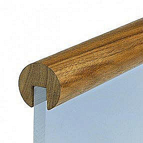 Хлыст из 2 ламелей ясеня, с разнонаправленным расположением волокон для увеличения прочностных характеристик, длиной от 1м до 4м, диаметром 50 мм, обработанный, шлифованный, под покраску. Без поперечных сращений* – можно использовать лазурь (полупрозрачную краску, подчеркивающую рисунок дерева). Паз под стекло, как правило, делают на 1-2мм шире, чем толщина стекла. Глубина варьируется от 20 до 22 мм, при добавлении светодиодной подсветки в паз - до 27мм. Для монтажа используют силикон, например , для триплекса - нейтральный силиконовый герметик. В местах поворотов и переходов стоит запиливать поручень под нужным углом и соединять с помощью шпильки ( или ) вместе с каучуковым клеем Titebond (). По торцам рекомендуется использовать деревянные заглушки (, ).