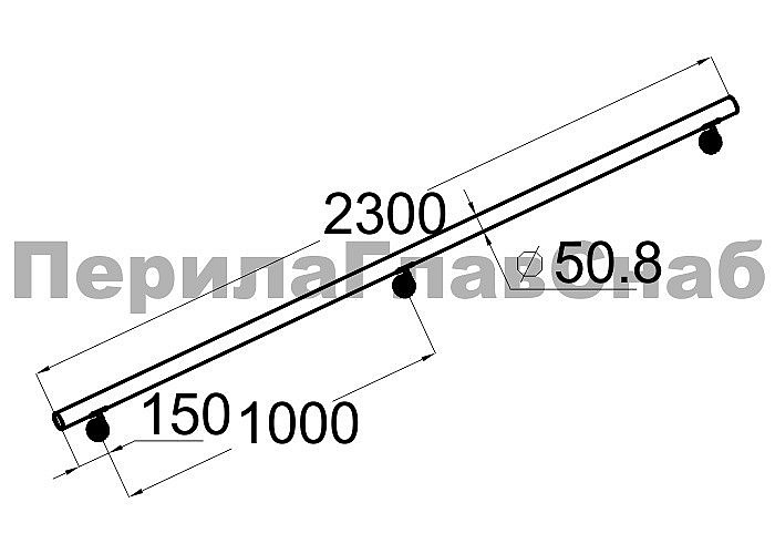 Готовый пристенный поручень с тремя держателями, длина 2300мм