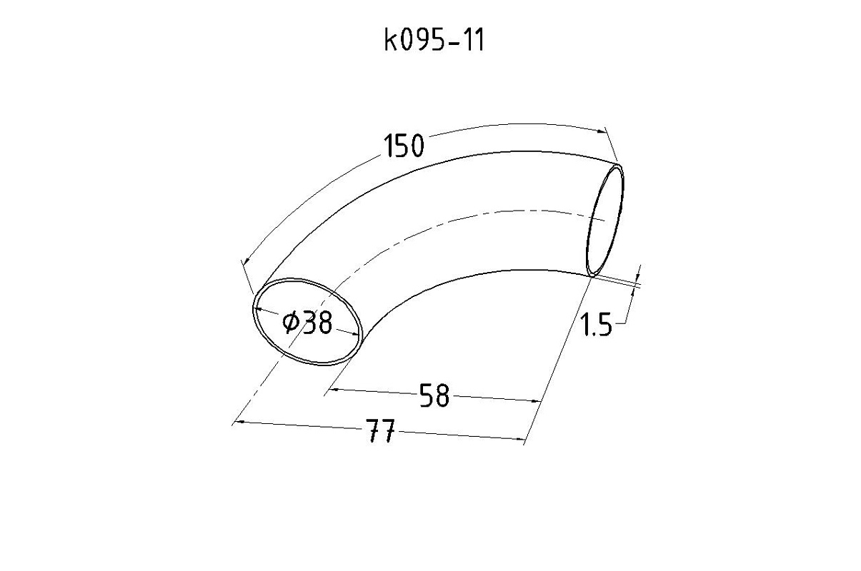 Ø38.1х1.45 мм, 90°, длина дуги 150 мм