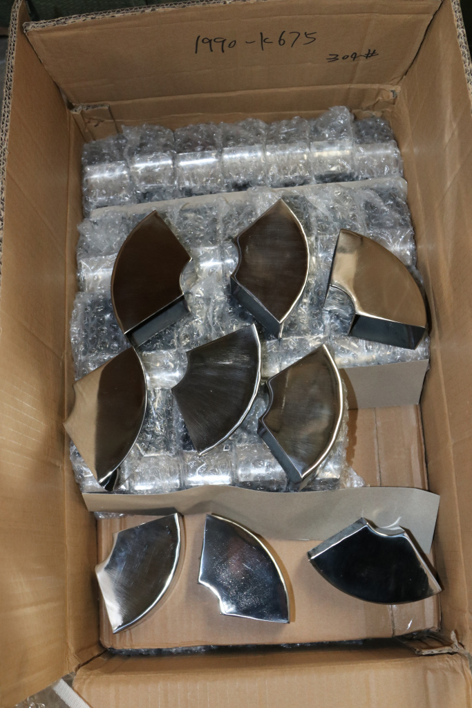 Отвод поручня 60х40х130x1.5 90°. Деталь полированная 600 Grit, марка стали - AISI 304
