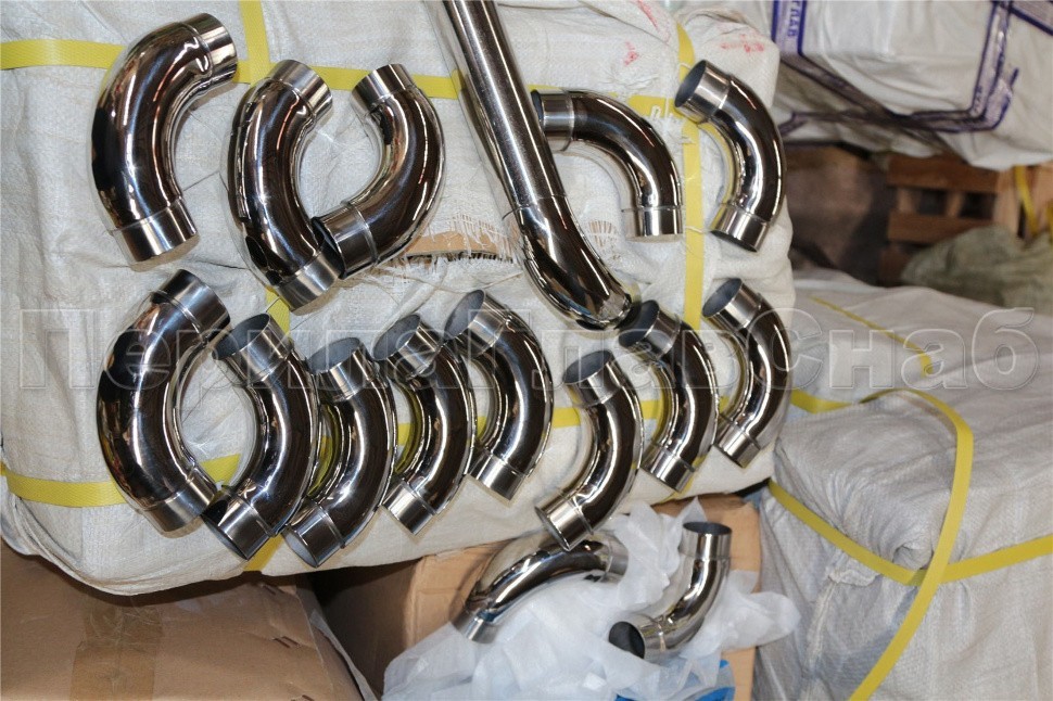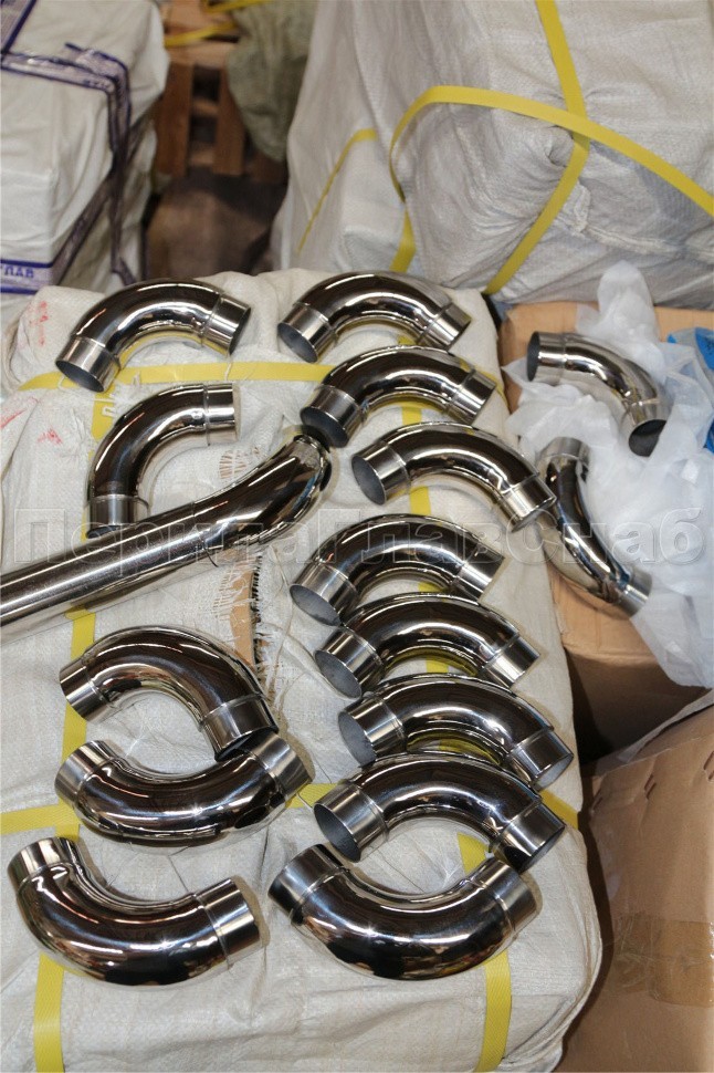 Отвод поручня под Ø42.4х1.5 мм, 90°, литой, полированный, с вставками (AISI 201) k383-3