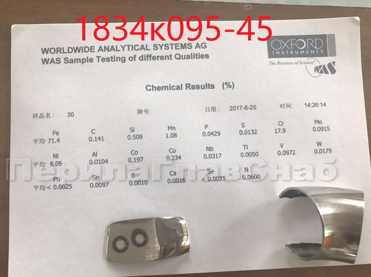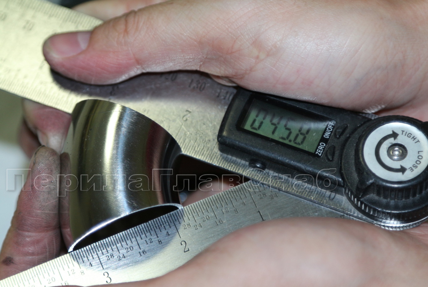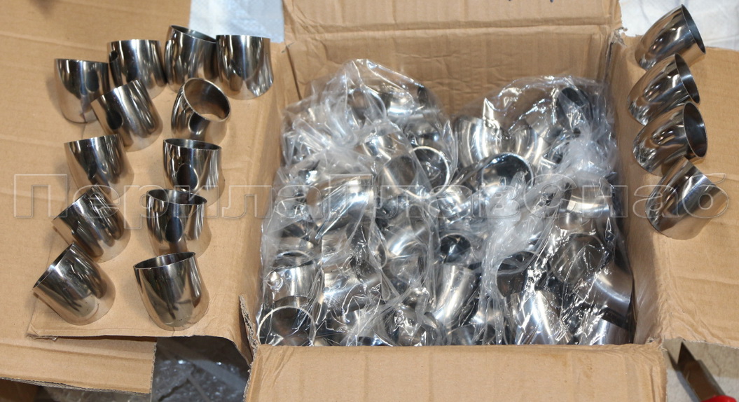 k095-45 отвод поручня Ø38.1х100/2х1.35 мм, 45°, полированный 400 Grit, (AISI 304)