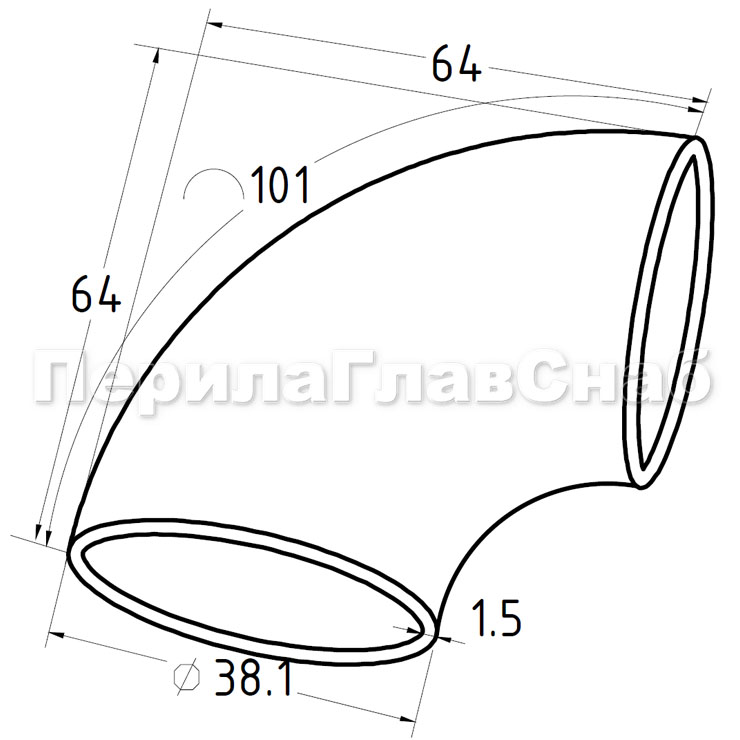 Отвод поручня Ø38.1х100х1.45 мм, 90°