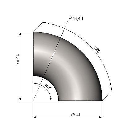 Сечение кромки отвода представляет собой круг. Отвод с самой распространенной полировкой в 400 Grit.