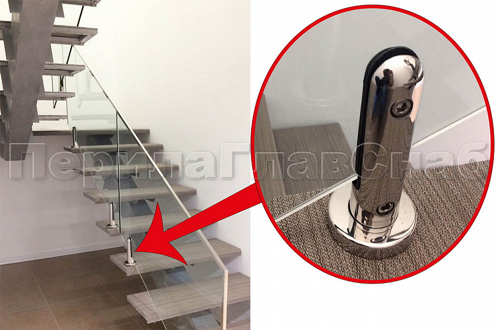 Если у Вас стекло 16 мм (триплекс 8+8) Вам необходимо заказать дополнительно винт М-3276 к количестве 1 штуки. Если по проекту предусмотрен поручень, то мы рекомендуем использовать трубу с пазом прямоугольного сечения 60х40 (k824-4 , k824-2 , k824-5 ) или круглого сечения ф48( k822-3) и ф42 (k820-3 ). Кромку стекла также можно закрыть с помощью маленького п-образного профиля из нержавеющей стали Ф-0454 и Ф-0455