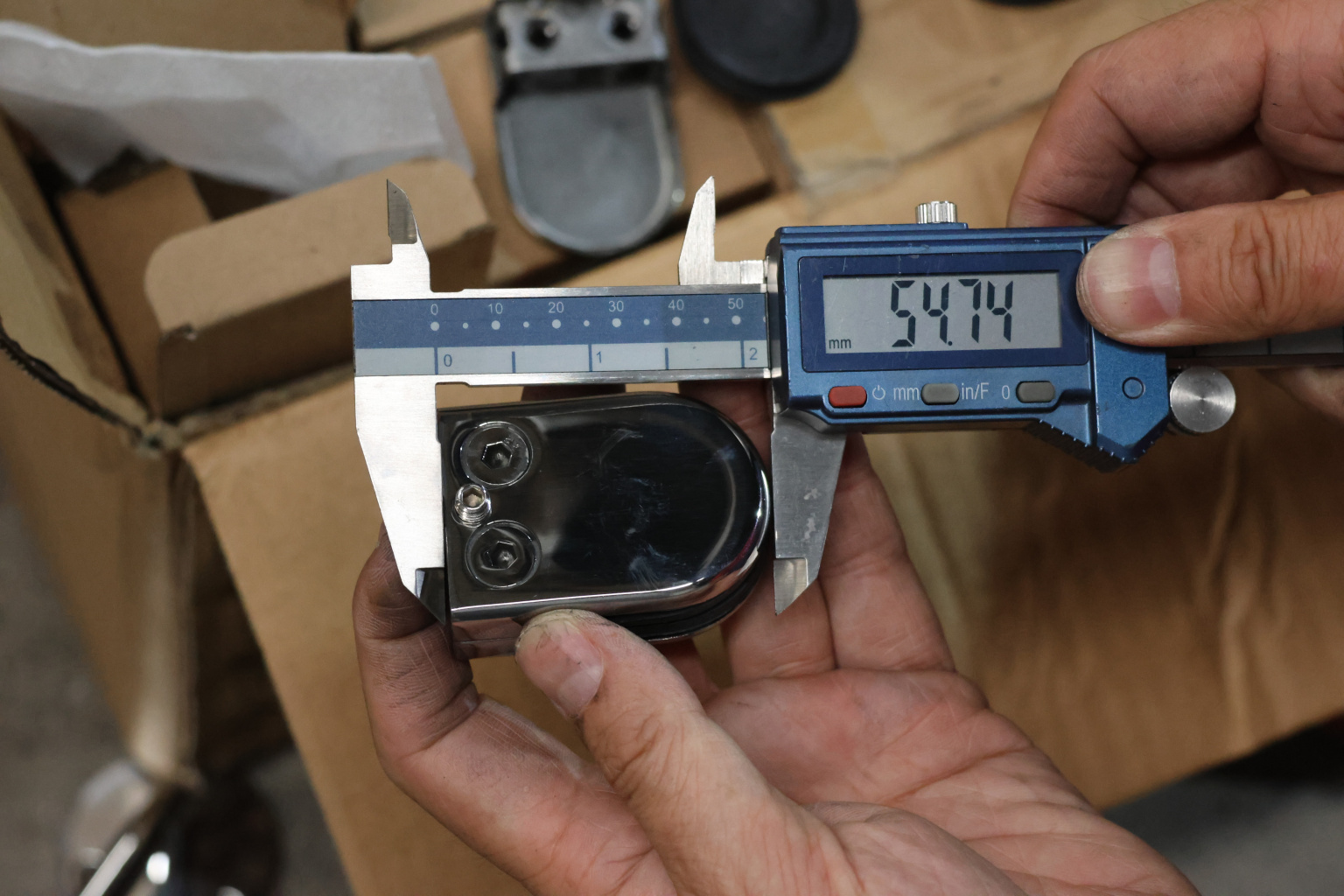 Стеклодержатель штампованный под стекло 8мм (4+4 мм), под стойку Ø38.1 мм 40х22х54, полированный (AISI 304) k538-2