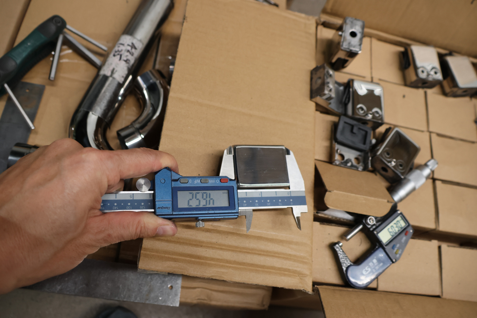 Наконечник на стойку из профильной трубы 40х40 мм, с регулируемым ложементом под плоскость, литой, полированный, нержавеющий AISI 304 k222-3 купить в Симферополе