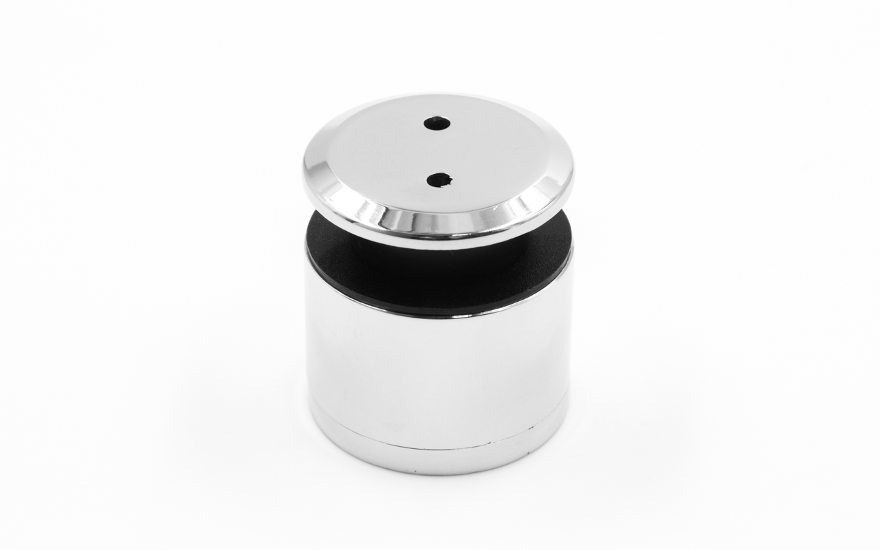 Стеклодержатель Ø50х10х18, шпилька М16х205 мм, для стекла 8-40 мм, AISI (201), с возможностью регулировки выноса до 65 мм, для торцевого крепления стекла, полированный, литой k277-3