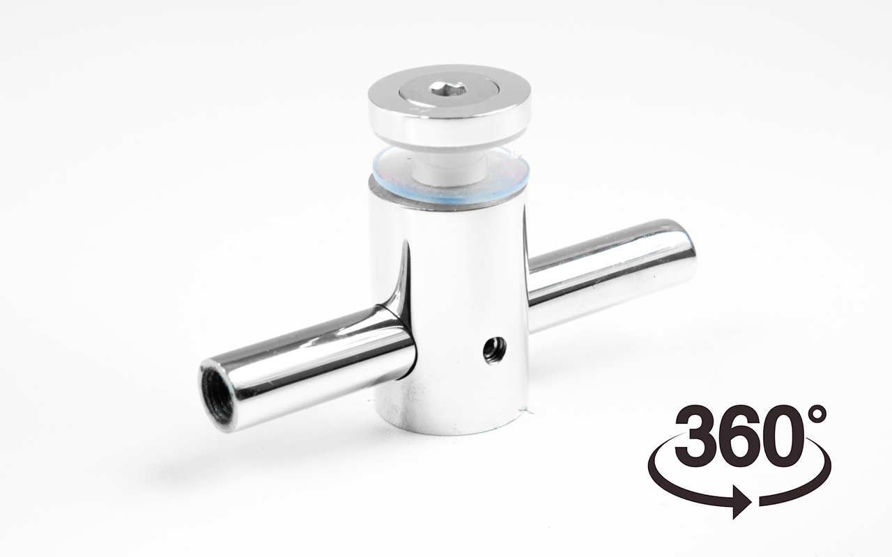 2 гайки Ø25 мм, в комплекте с втулкой k503 и винтом М8, палец Ø18х106 мм. Благодаря наличию регулировки, отступ кромки стекла относительно оси стойки может доходить до 60 мм, а вынос составляет 30 мм