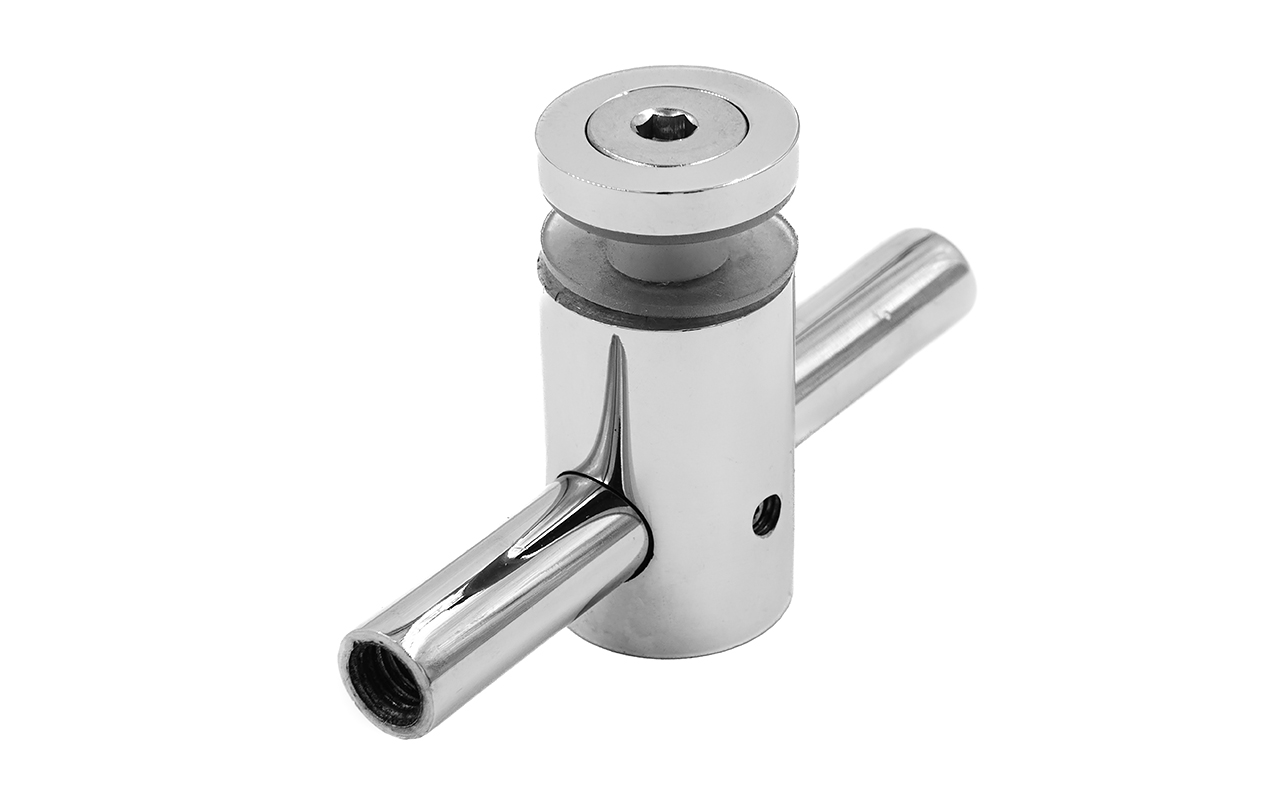 Спайдерный стеклодержатель предназначен для установки стекол толщиной от 8 до 10 мм на ограждения в торговых центрах. Для зажима более толстого стекла, достаточно заменить штатные винты стеклодержателя на увеличенные по длине аналоги с плоской головкой и резьбой М8. Стекло устанавливается между плоскими стойками, которые наиболее часто встречаются именно в крупных объектах — это торговые и развлекательные центры, офисные и бизнес-центры.