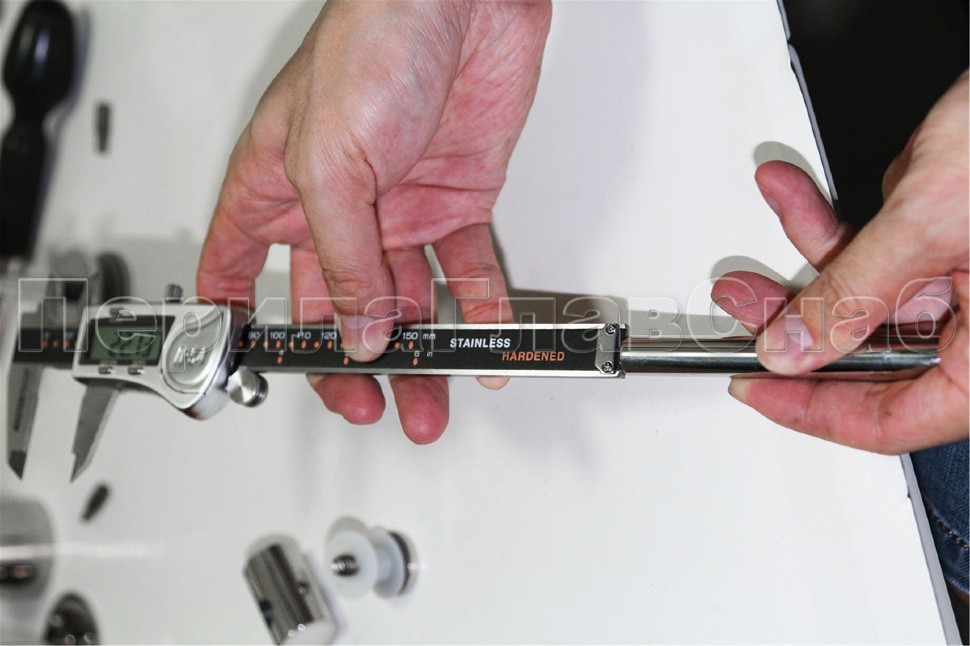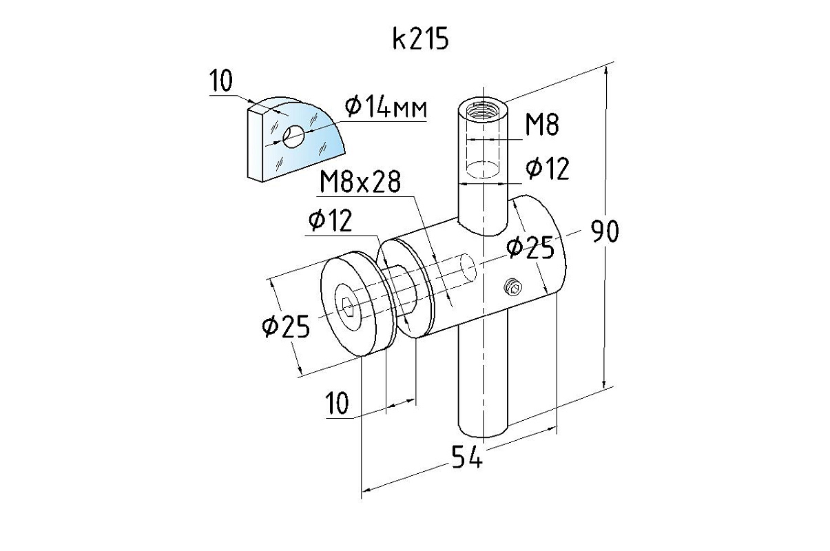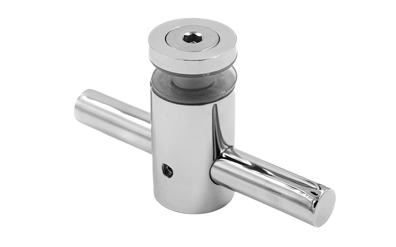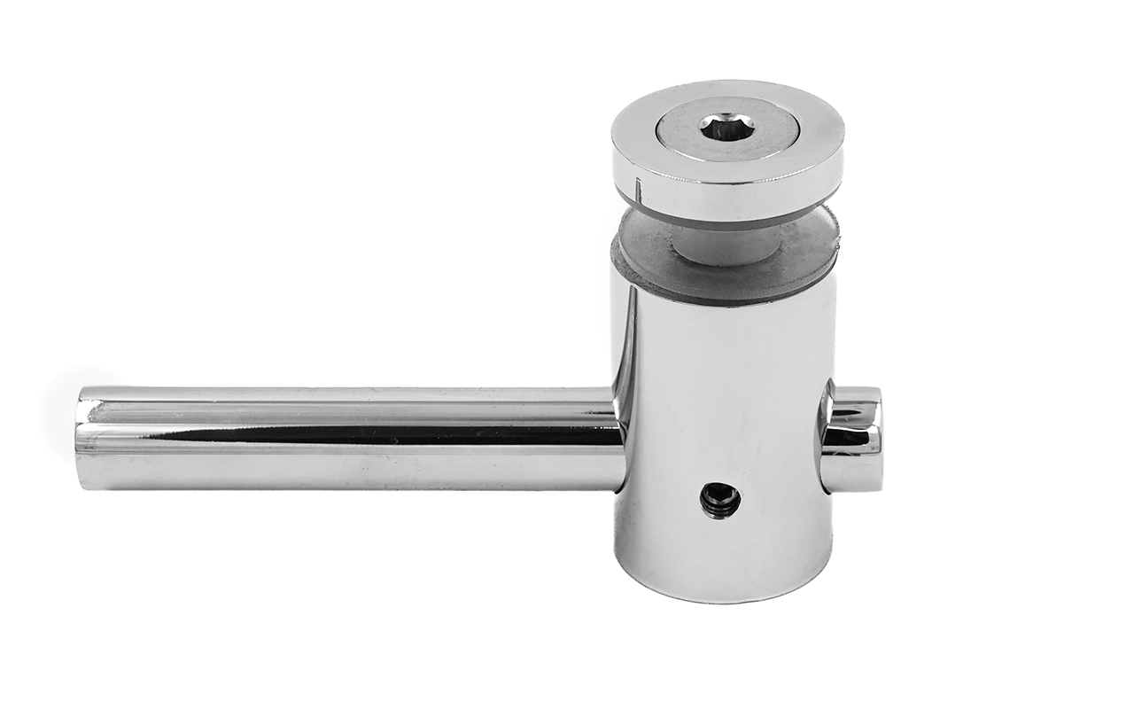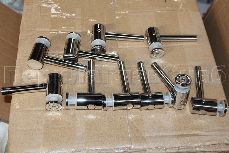 2 гайки Ø25 мм, в комплекте с втулкой k503 и винтом М8, палец Ø18х106 мм. Благодаря наличию регулировки, отступ кромки стекла относительно оси стойки может доходить до 60 мм, а вынос составляет 30 мм