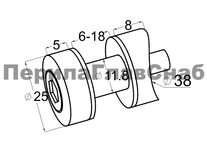 диаметр шайбы - 25 мм, под стекло 6-18 мм, отверстие в стекле Ø12-13 мм k940-5.0 шестигранник ULTRA поштучно 5.0 мм
