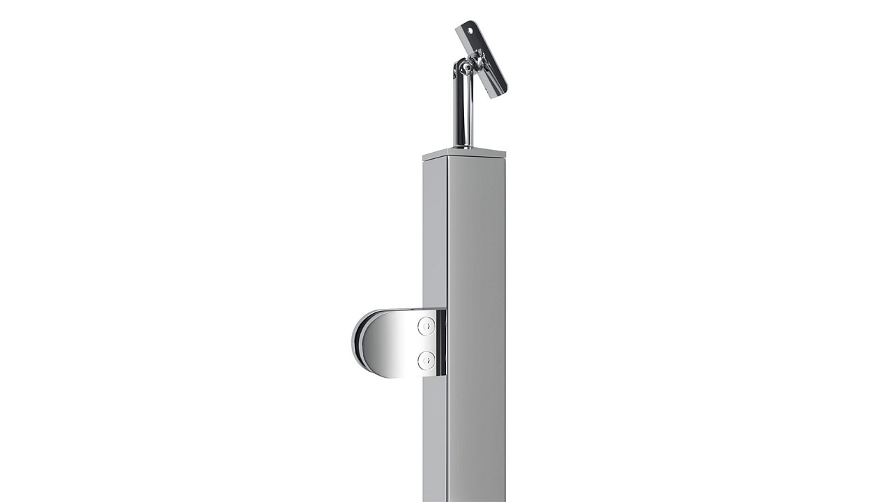 Стойка квадратная 40х40: 2 литых зажимных стеклодержателя, полированная, высота 950 мм (AISI 304) k745-L