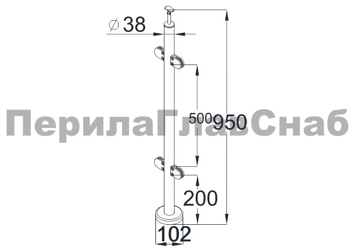 Cтойка круглая Ø38.1: 4 штамп. стеклодержателя, полированная, высота 950 мм (AISI201)