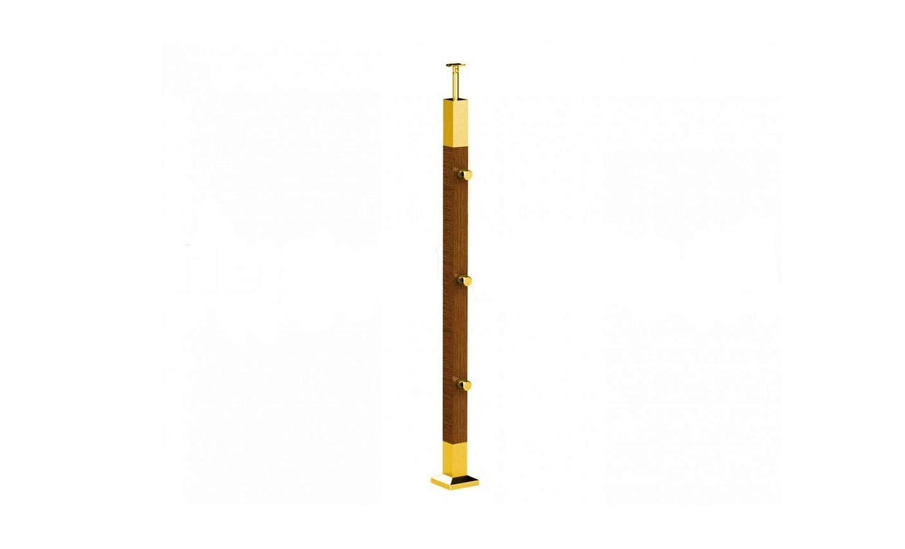 Готовая стойка 40х40х950 мм, деревянная, со вставками из нержавеющей стали 2х100 мм с 2 пластинчатыми стеклодержателями, под золото k740-2-G купить в Симферополе