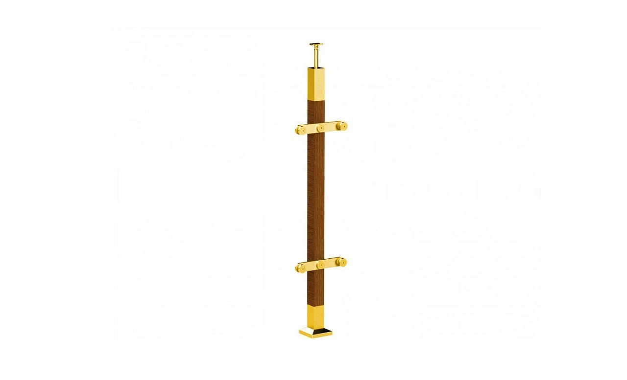 Готовая стойка 40х40х950 мм, деревянная, со вставками из нержавеющей стали 2х100 мм с 4 зажимными стеклодержателями, под золото k740-3-G купить в Симферополе