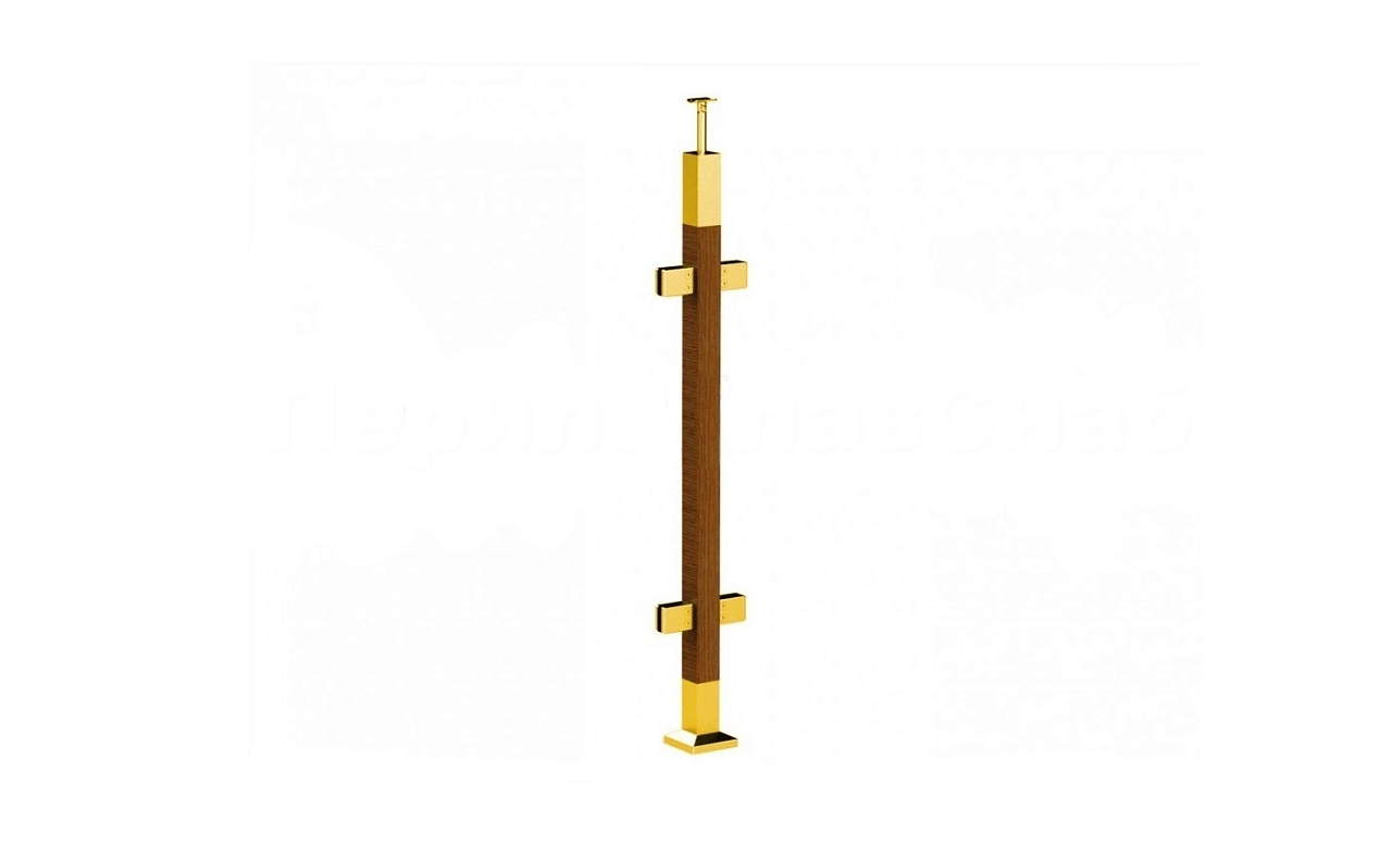 Готовая стойка 40х40х950 мм, деревянная, со вставками из нержавеющей стали 2х100 мм с 2 зажимными стеклодержателями, под золото k740-4-R-G купить в Симферополе