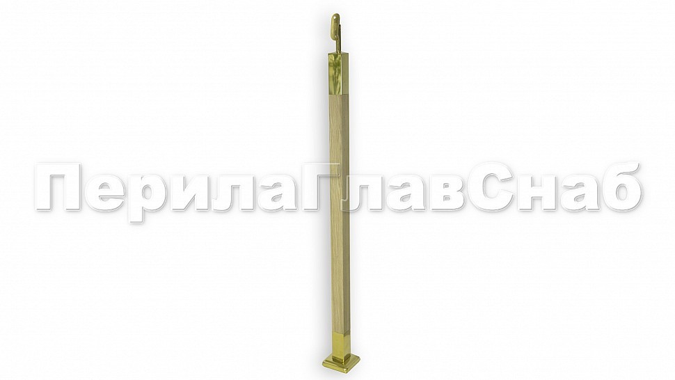 Готовая стойка 40х40х950 мм, деревянная, со вставками из нержавеющей стали 2х100 мм с 4 зажимными стеклодержателями, под золото k740-3-G купить в Симферополе