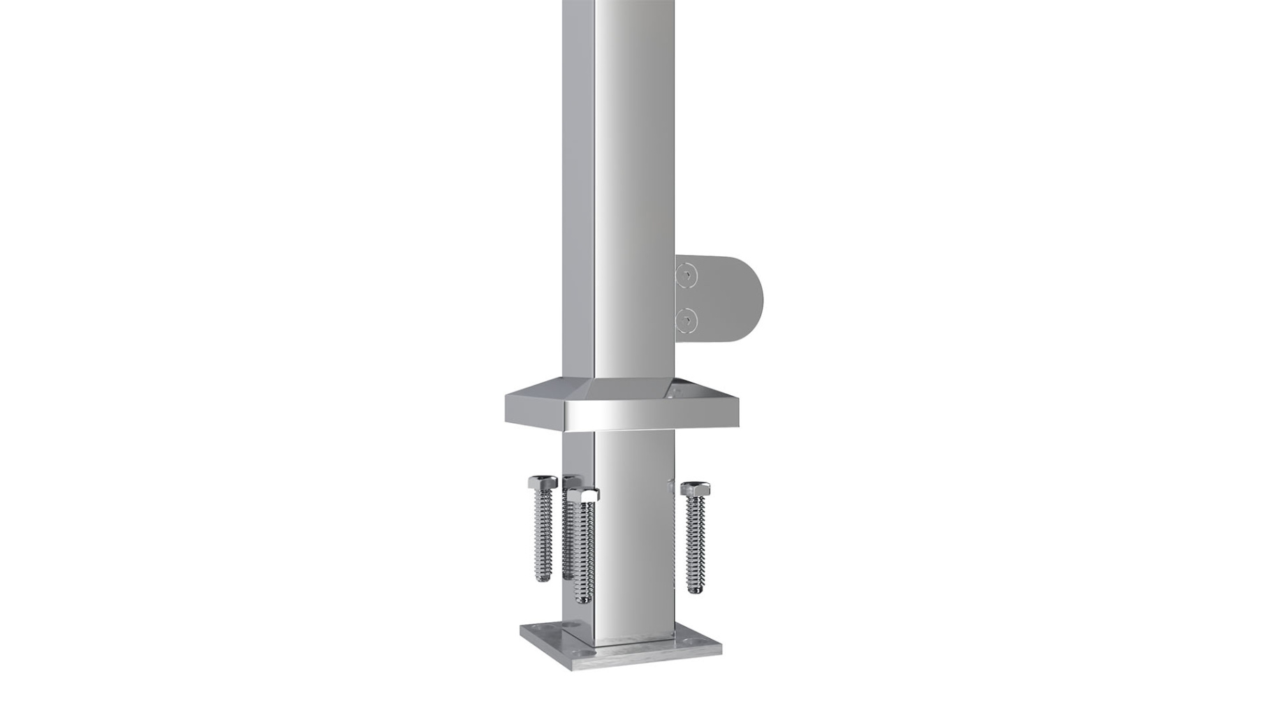 Стойка квадратная 40х40: 2 литых зажимн. стеклодержателя, шлифованная, высота 950 мм, марка стали- AISI 304