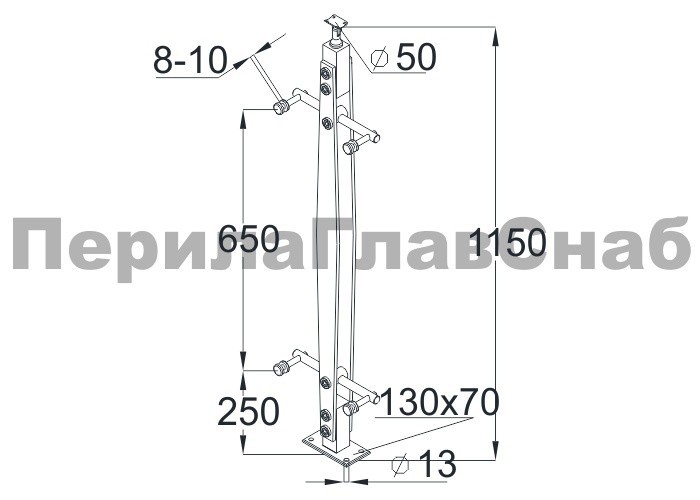 Готовая стойка Ø38,1х950 мм деревянная, со вставками из нержавеющей стали 2х100 мм с 4 стеклодержателями k741-3 купить в Симферополе