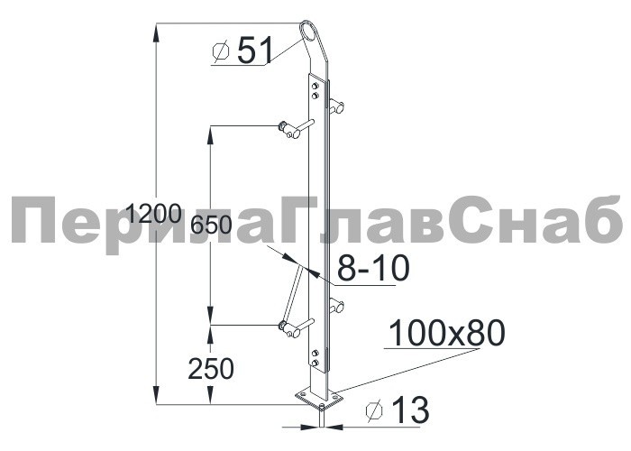 Готовая стойка Ø38,1х950 мм деревянная, со вставками из нержавеющей стали 2х100 мм с 2 стеклодержателями k741-2-R купить в Симферополе