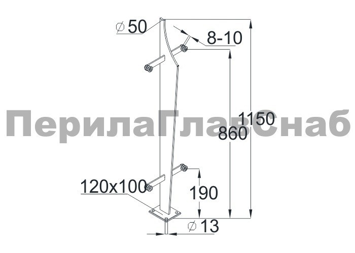 Стойка эксклюзивная с двумя пластинчатыми стеклодержателями, крепление в пол, нерегулируемый ложемент (aisi 304)