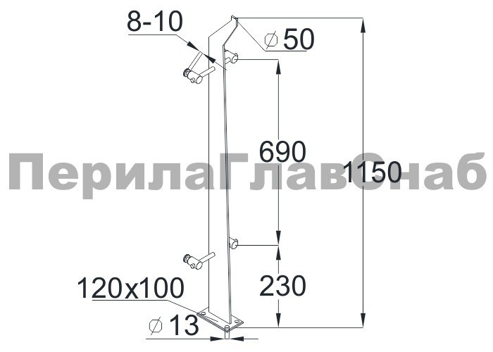 Готовая стойка Ø38,1х950 мм деревянная, со вставками из нержавеющей стали 2х100 мм с 2 стеклодержателями k741-2-L купить в Симферополе