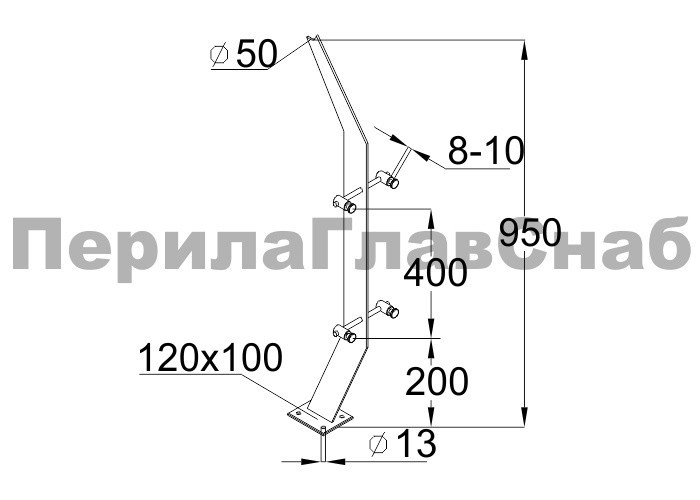 Готовая стойка 40х40х950 мм, деревянная, со вставками из нержавеющей стали 2х100 мм с 3 ригеледержателями k740-1-G купить в Симферополе