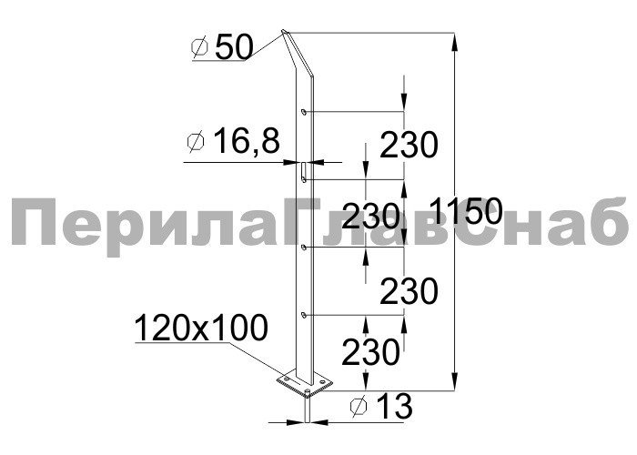 Готовая стойка 40х40х950 мм, деревянная, со вставками из нержавеющей стали 2х100 мм с 3 ригеледержателями k740-1-G купить в Симферополе