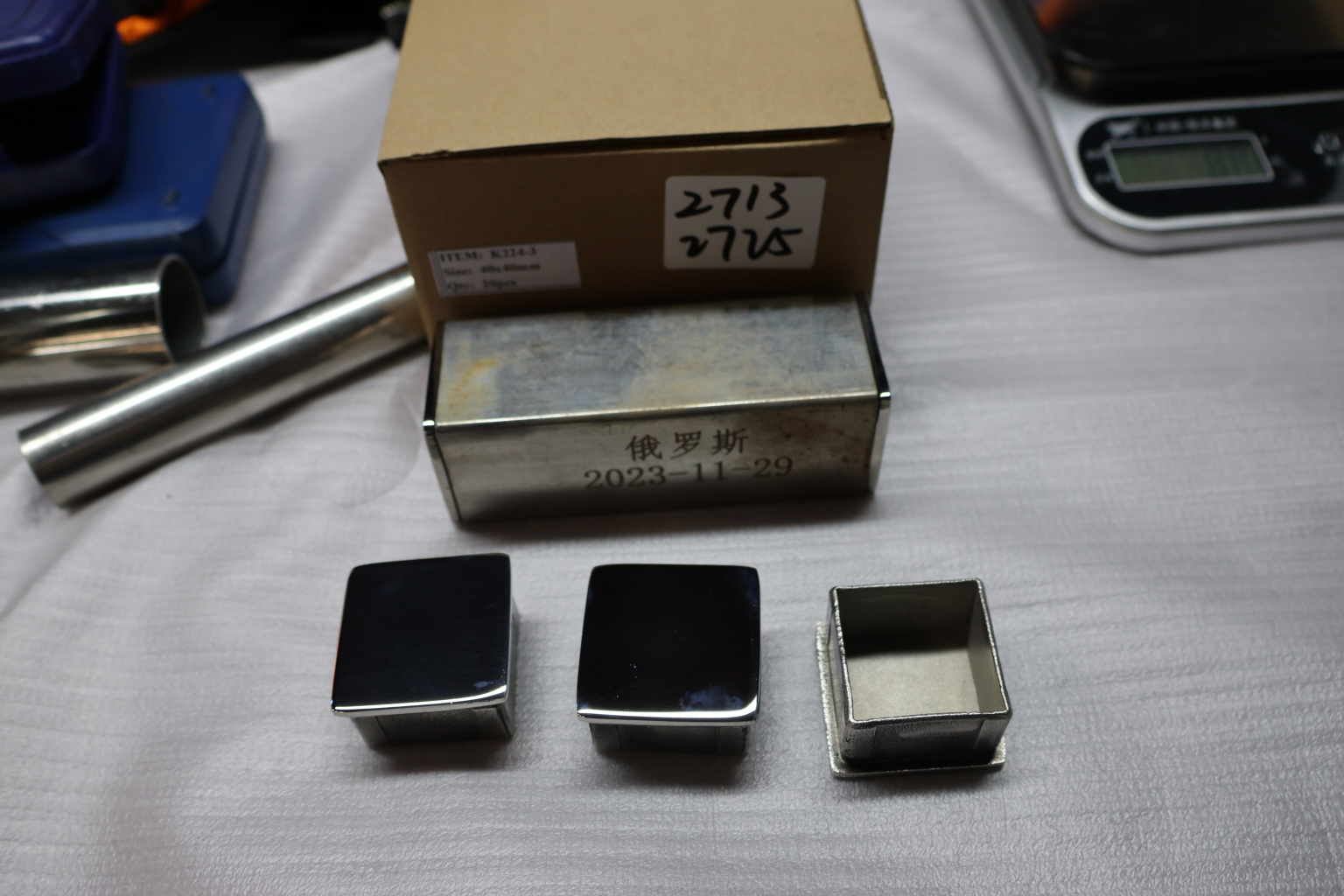 Заглушка для квадратных труб 40х40 мм. Деталь литая, полированная, марка стали - AISI 304