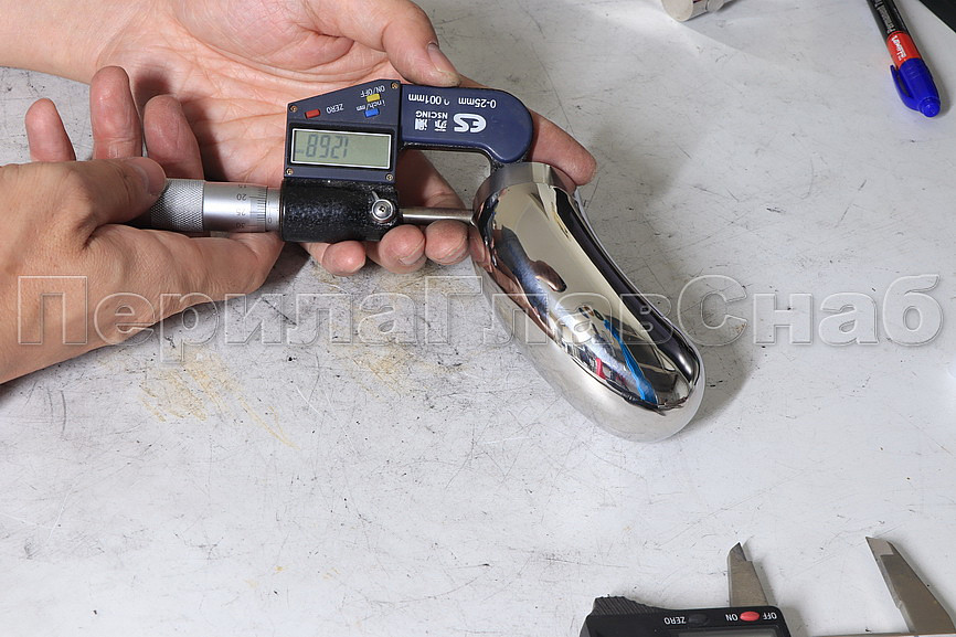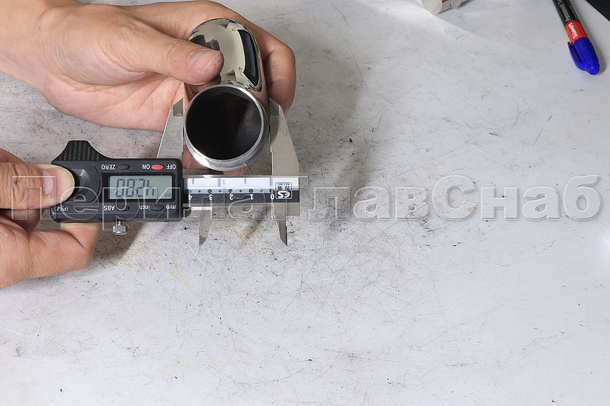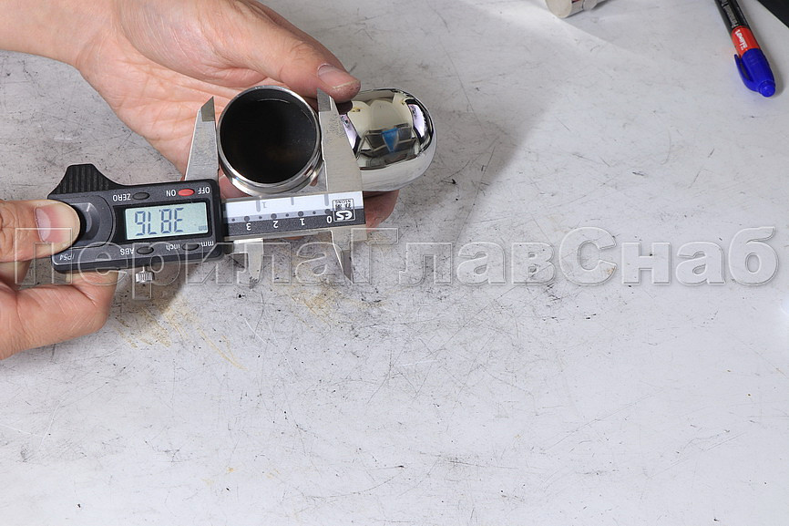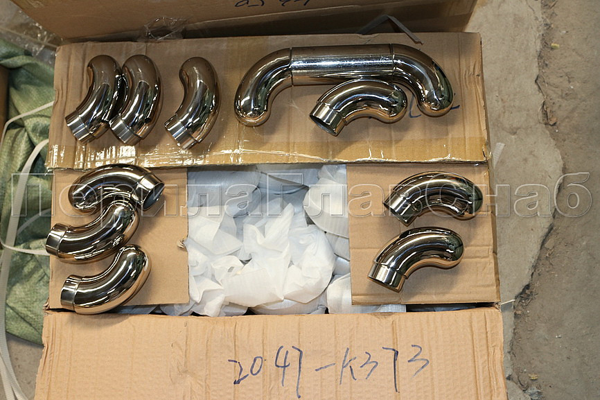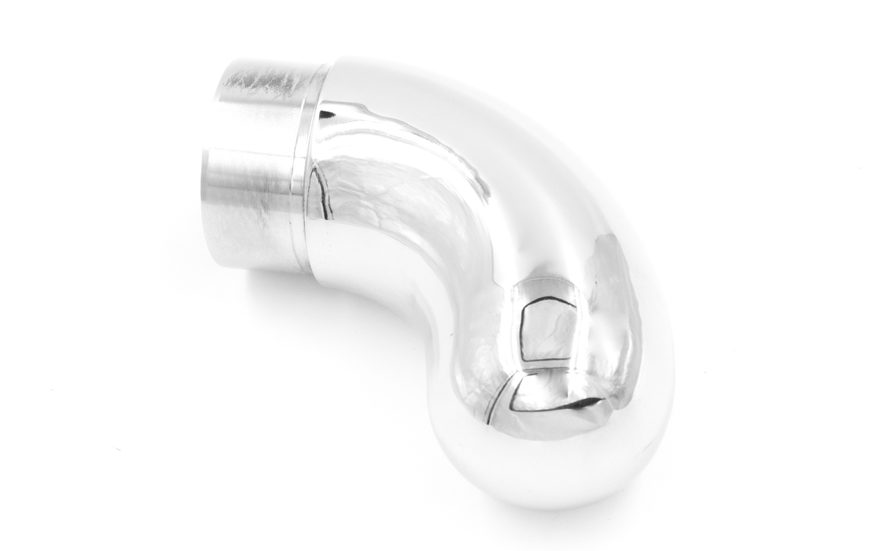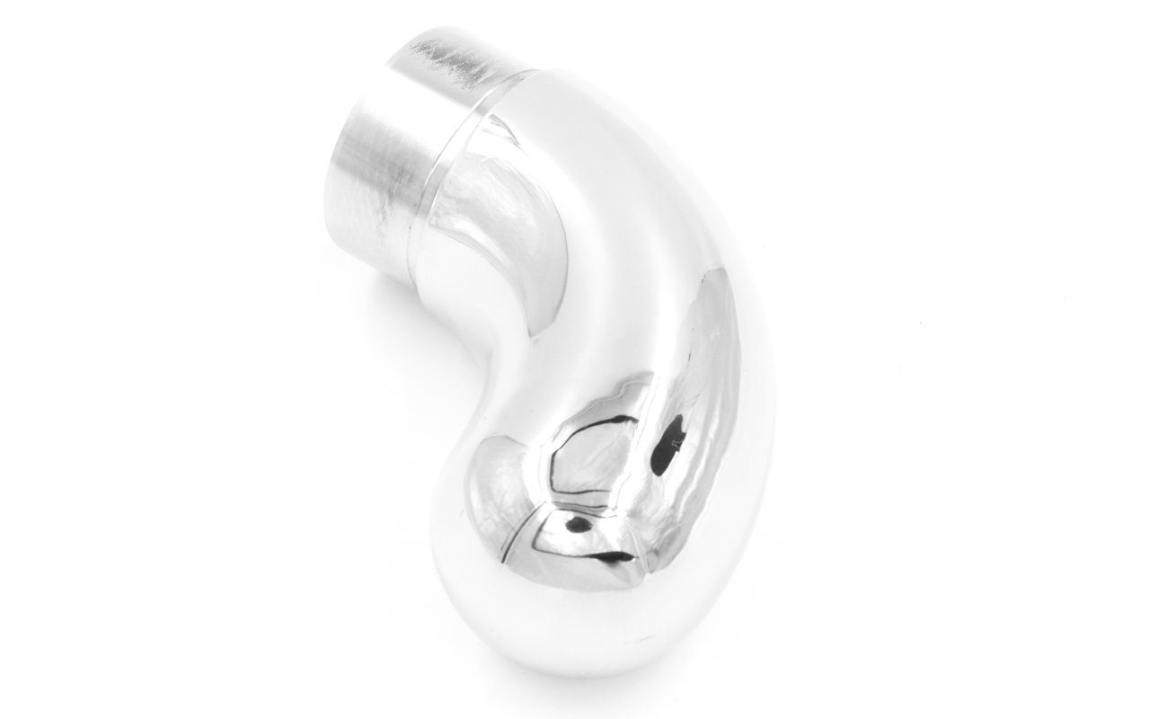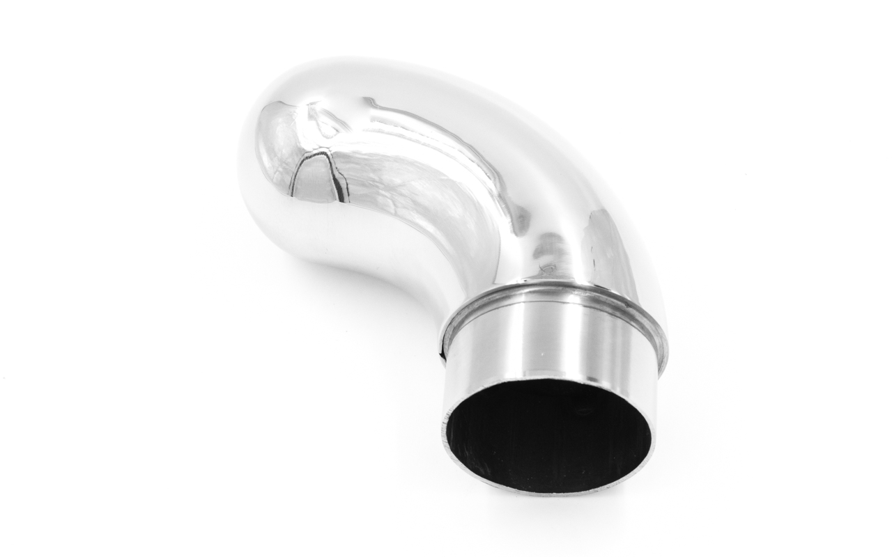 Отвод оконечный с круглой заглушкой под трубу Ø42.4. Деталь литая, полированная #600, марка стали - AISI 304