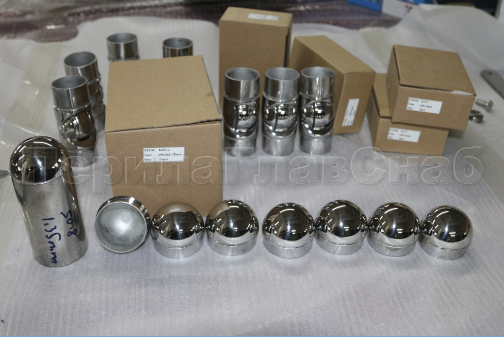 Заглушка сферическая для трубы диаметром 50.8х1.45 мм. Деталь полированная, литая. Марка стали - AISI 304
