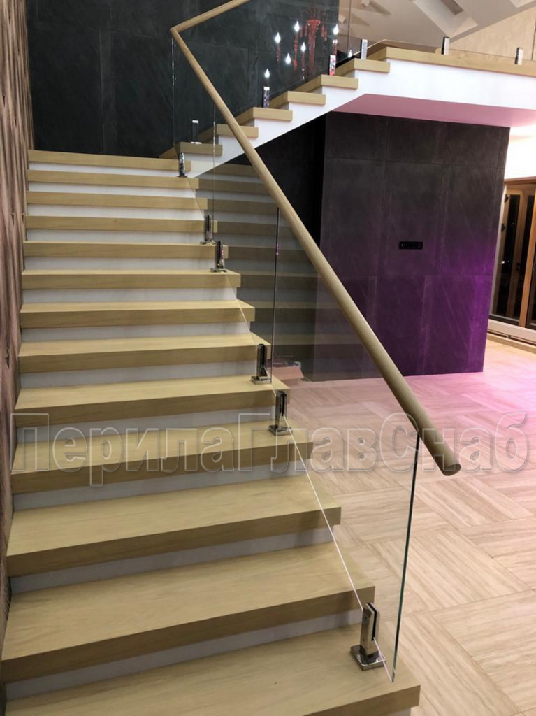 Конструктив: дубовые перила на калёном стекле 10 мм, с министойками