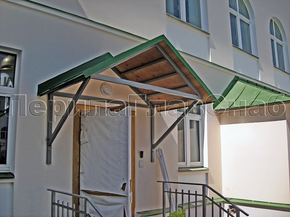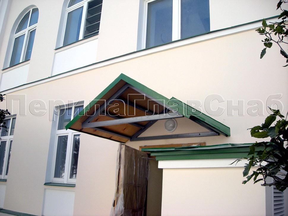 Придерживаясь той же исторической канвы, что была использована в архитектуре здания, разрабатывались и внедрялись дизайнерские решения в оформлении остальных конструкций, — это и козырек над входом и стеклянная защита цокольного и подвального этажей.