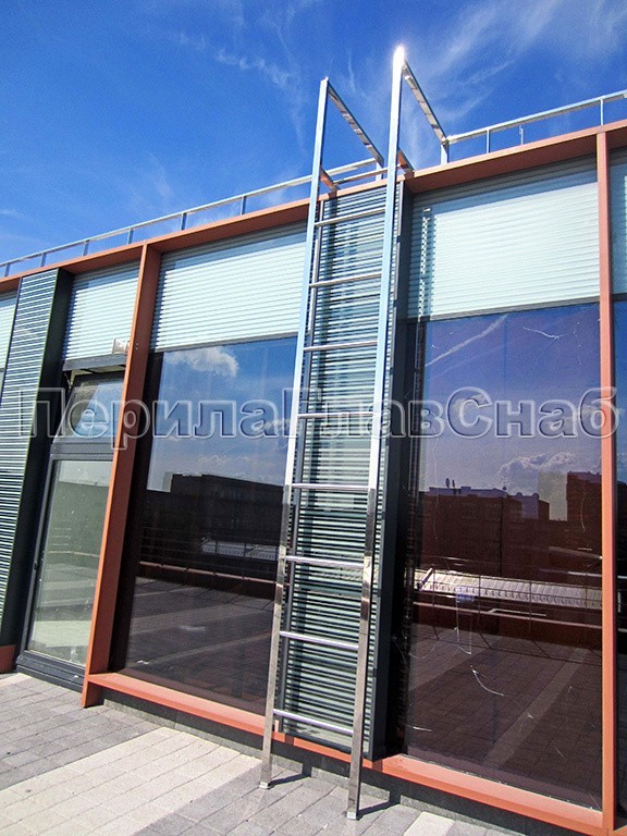Значительной долей работы на данном объекте была установка лестничных ограждений внутри здания. Для этого объекта были смонтированы стойки и перила круглой формы из нержавеющей полированной стали. Боковое крепление стоек было продиктовано ограниченным пространством на лестничном марше. Ригели и поручни между собой не завязаны и снабжены двумя перемычками. При этом полностью соблюдены нормы пожарной безопасности и расстояние между маршами не менее 100 мм, предусмотренное для протягивания пожарного шланга.