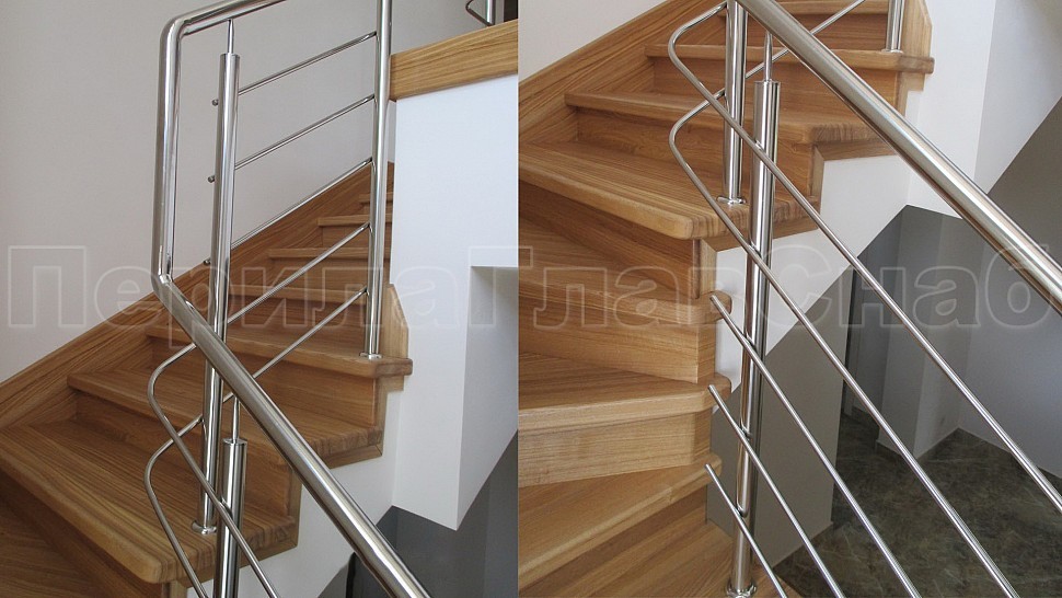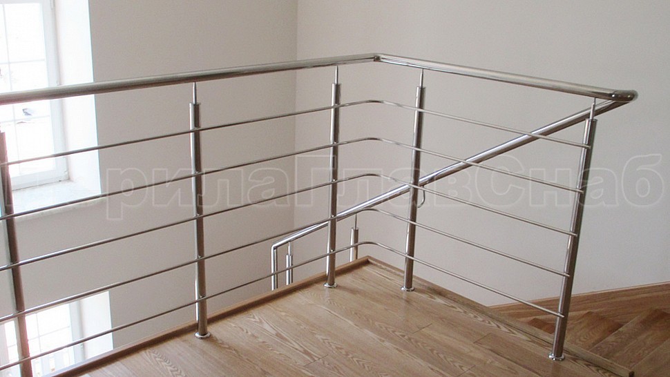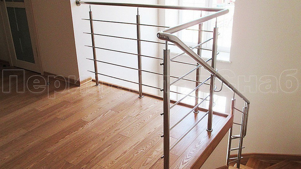 В загородный дом было установлено лестничное ограждение из нержавеющей стали AISI304 с пятью ригелями безопасное для всех обитателей дома. Сочетание металла с деревом создает эффект прочности и надежности, но в то же самое время от этого сооружения исходит ощущение теплоты. Такая конструкция является красивым декоративным украшением. Она придает эстетичный вид дому. При этом учтен дизайн помещения, чтобы лестница стала неотъемлемой частью декора. В интерьере загородного дома лестница становится одним из важнейших элементов обстановки. Она может создать атмосферу изысканности и уюта, став «изюминкой» помещения.