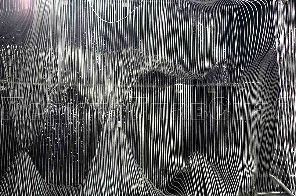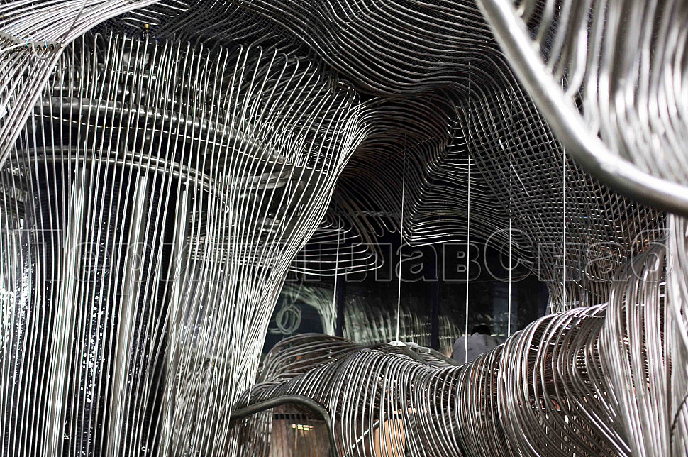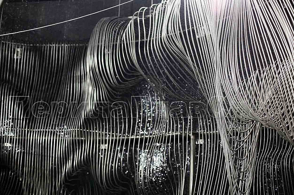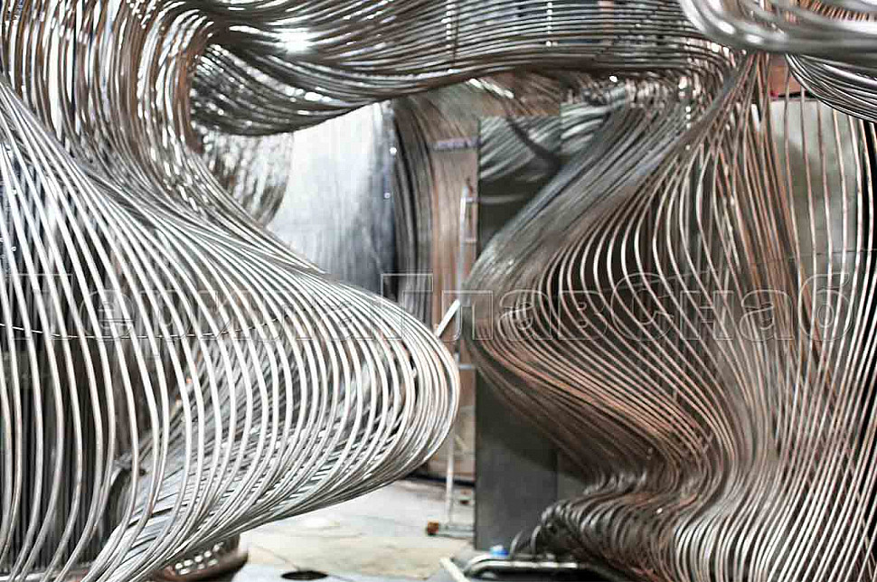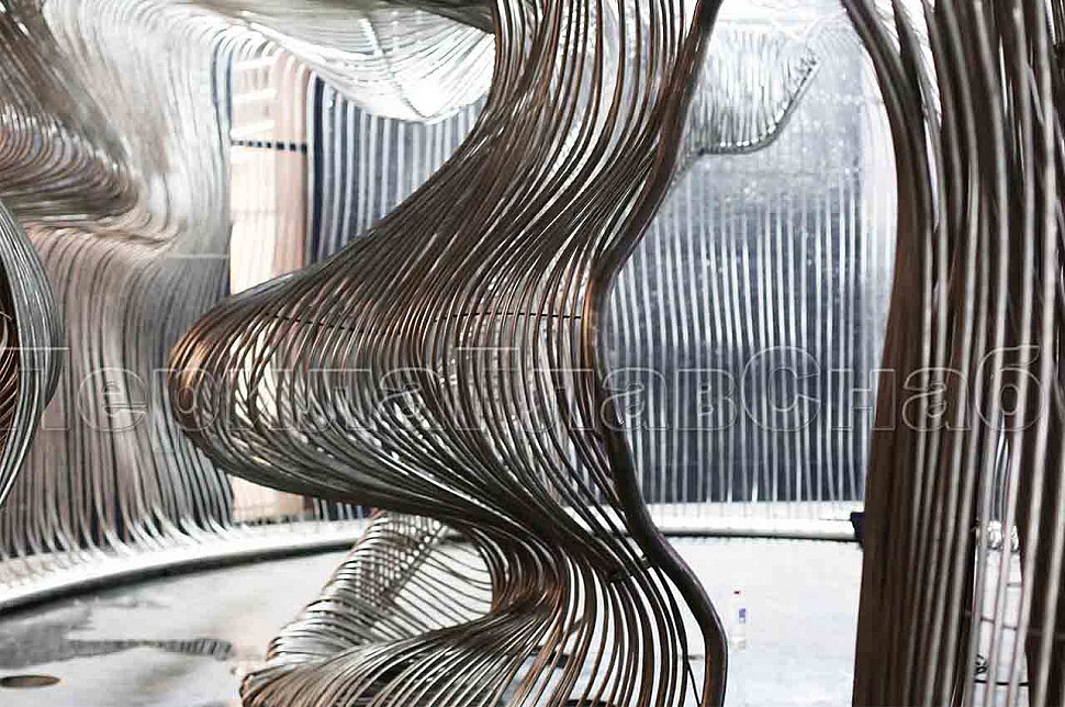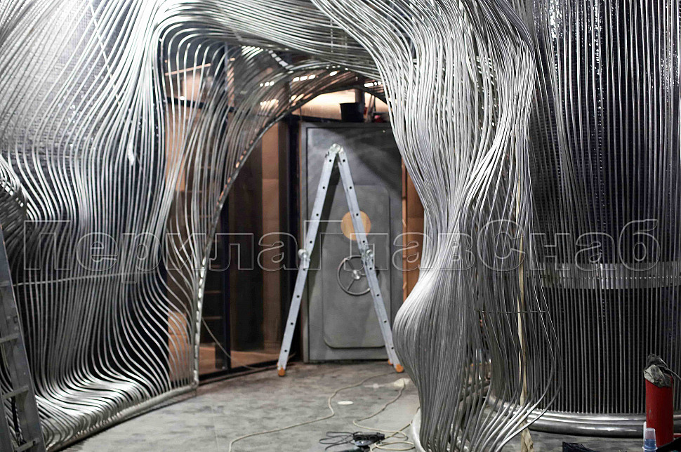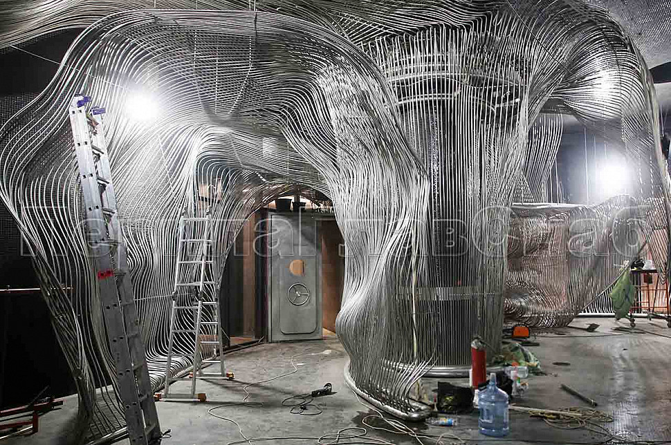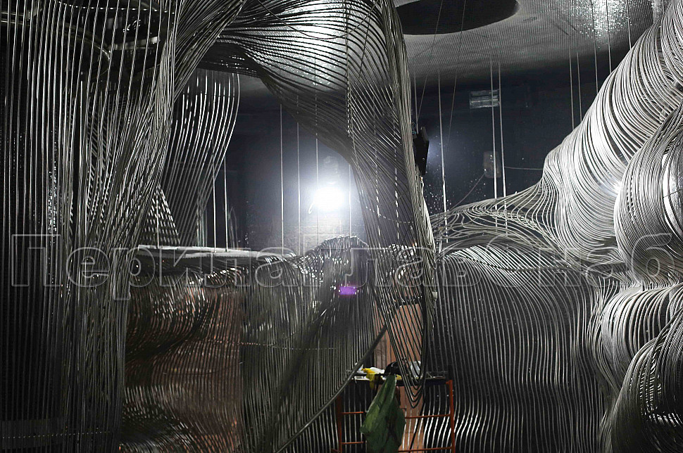 Шесть месяцев, более 150 человек, в 3 смены трудились над этим проектом. При кажущейся простоте, это очень сложная конструкция, тысяча квадратных метров 3-х мерной поверхности из нержавеющих труб 16 мм и 120 тонн льда. Каждая трубка по изгибу не похожа на предыдущие.Было много опасений за структуру льда, но удалось сделать его таким, как в Арктике.