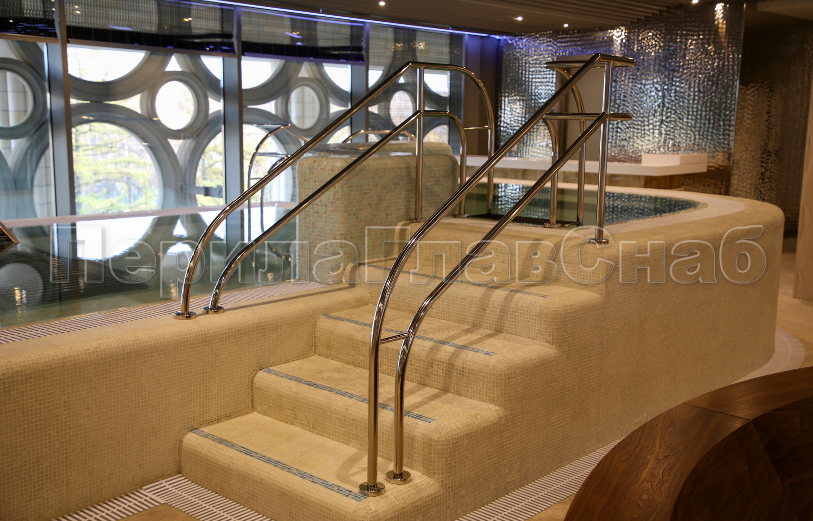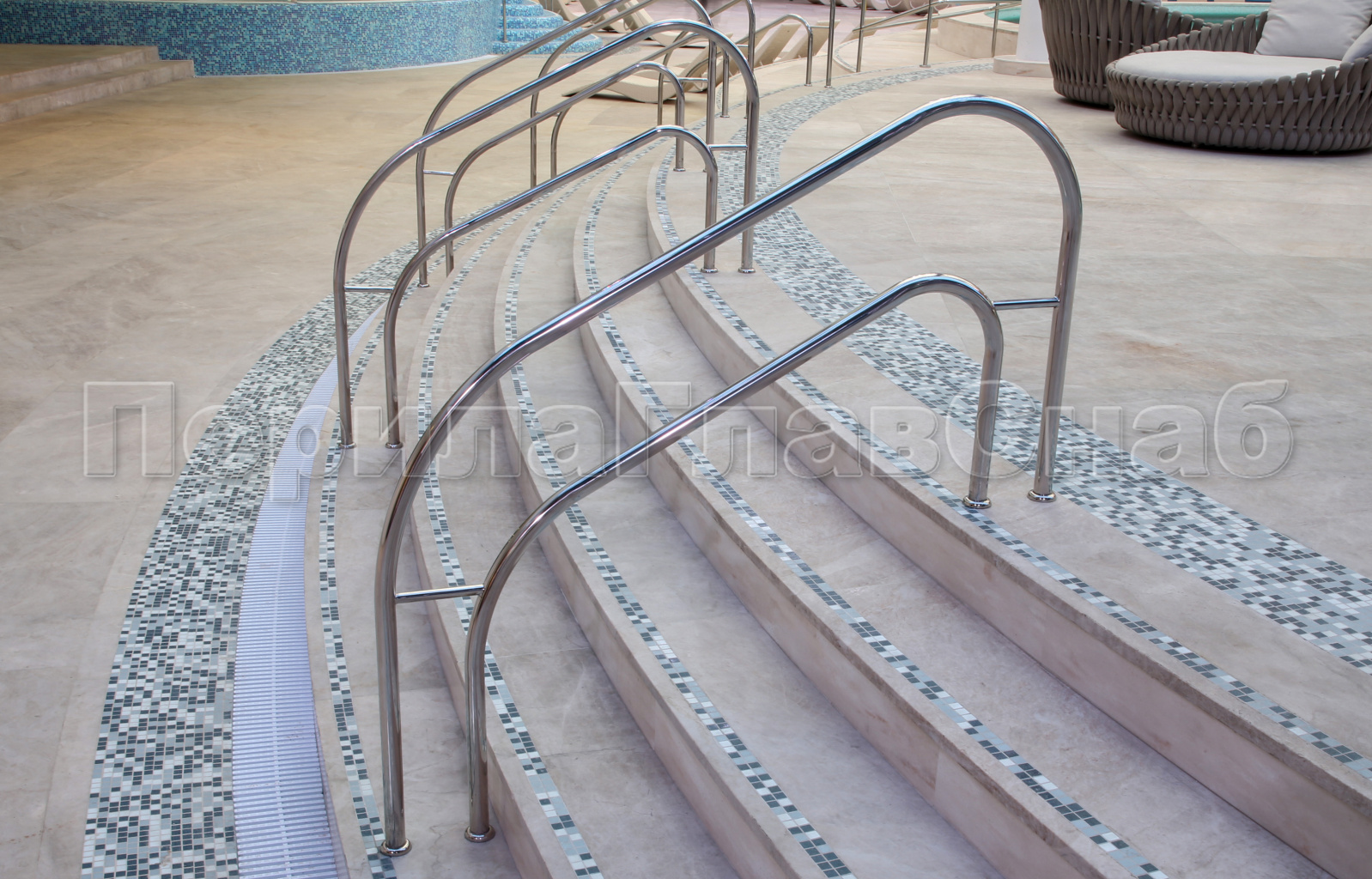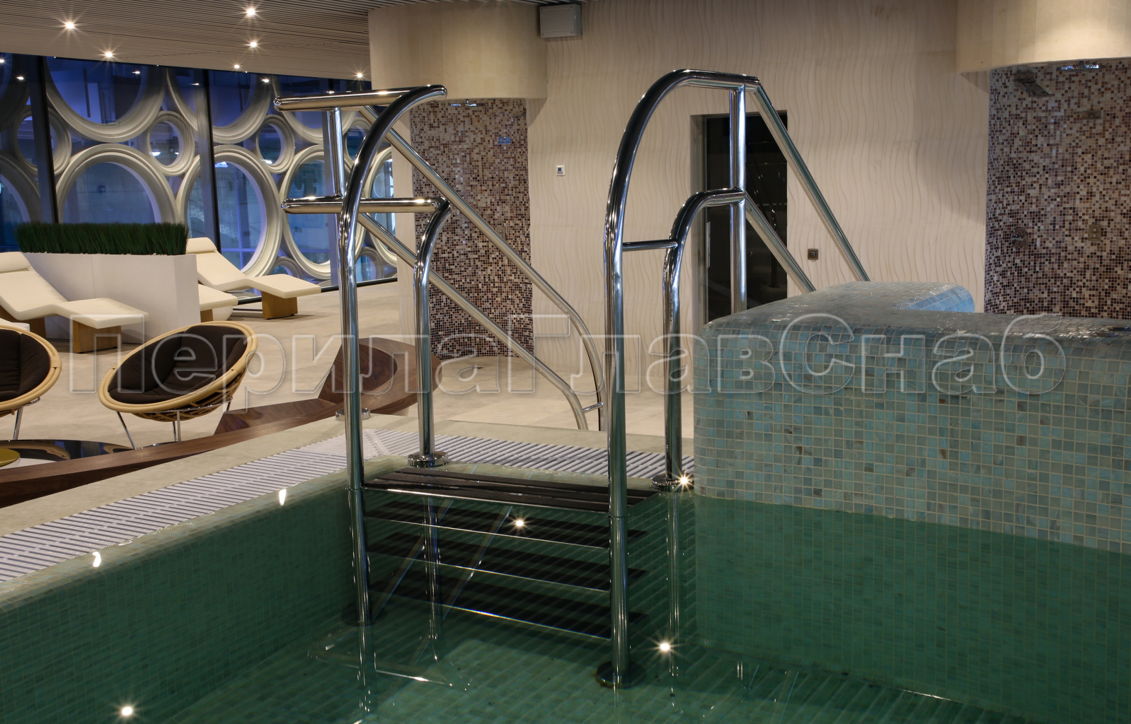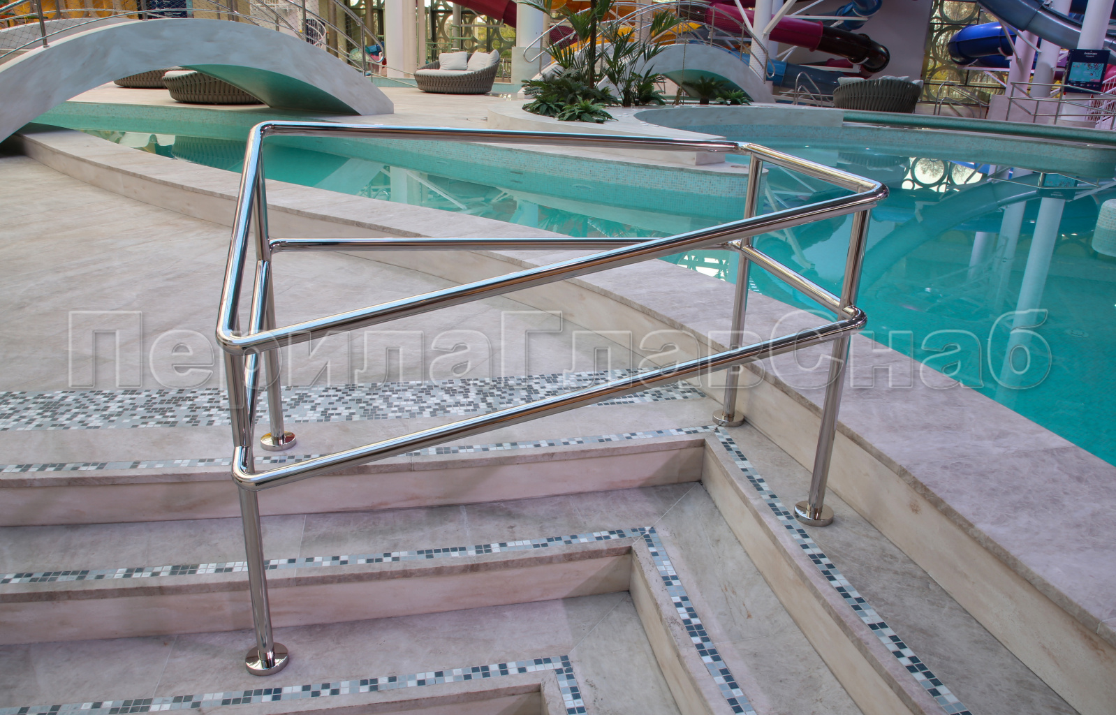 1) Поручни и ограждения должны быть выполнены из высоко коррозионно-устойчивого материала, так как контактируют с агрессивной средой-хлорированной водой.