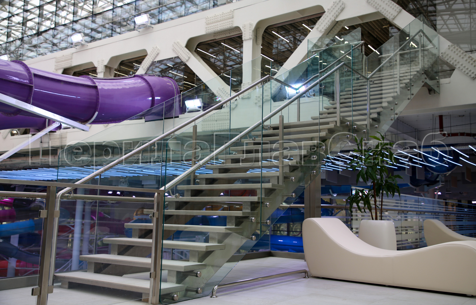 В конце 2019 года, завершилось строительство уникального объекта –Дворца водных видов спорта в Лужниках, расположенного в центре Москвы, около станции метро «Воробьевы горы». Завершающим этапом строительства стала установка нашей компанией «Перилаглавснаб» пятидесяти восьми поручней из нержавеющей стали в развлекательных бассейнах, а также облицовка восьмидесяти шести колон нержавеющим шлифованным листом, изготовления и монтажа колесо отбойников для защиты стен, колонн и интерьера. Основные и очень важные требования заказчика включали в себя :