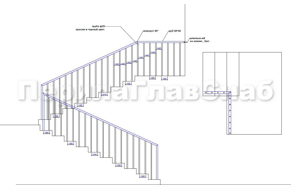 В Раменском районе физическое лицо обратилось в компанию ПерилаГлавСнаб с заявкой на ограждение лестницы в частный дом.