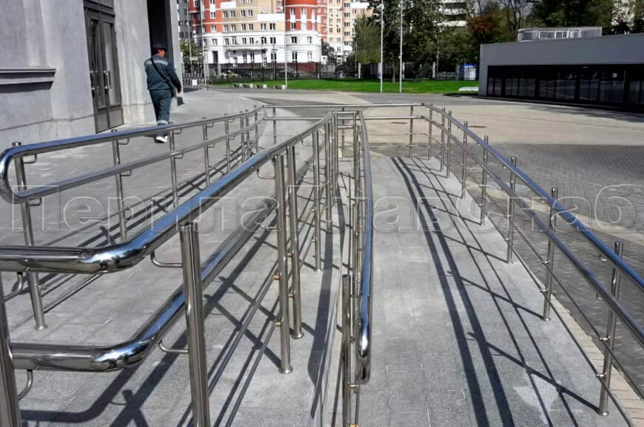 Для завершающего этапа сдачи объекта в эксплуатацию, необходимо было изготовить и смонтировать сто девяносто два метра ограждений пандуса для маломобильных групп из полированной нержавеющей стали и сорок метров трехригельных ограждений. Перед заказчиком стояли две основные задачи: