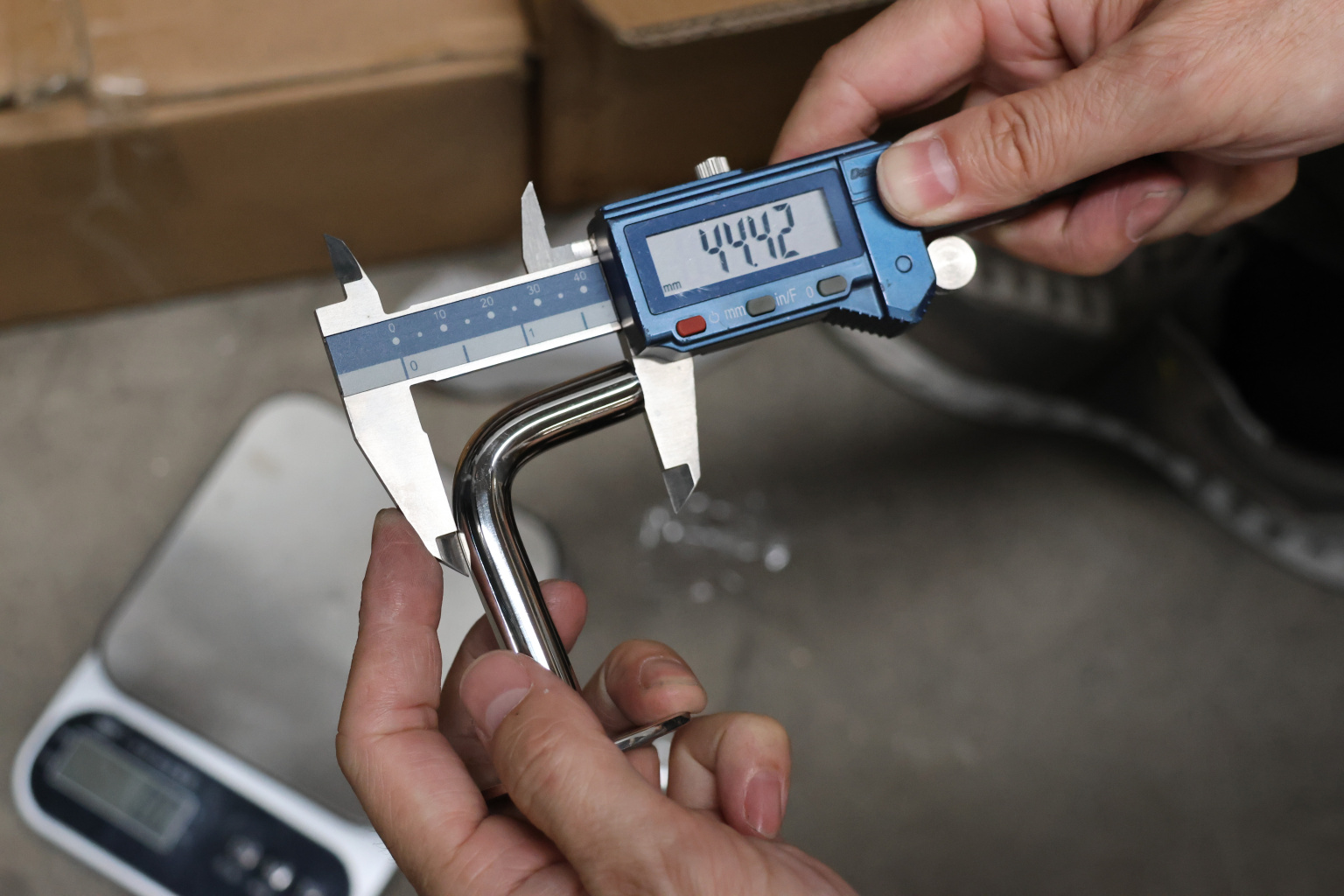 Благодаря оптимально подобранному выносу, пристенный поручень достаточно удален от поверхности стены, чтобы не задевать скользящей вдоль трубы поручня рукой идущего по лестнице человека. Но при этом поручень располагается близко к стене, чтобы не сужать свободное пространство полезной ширины лестничного марша.