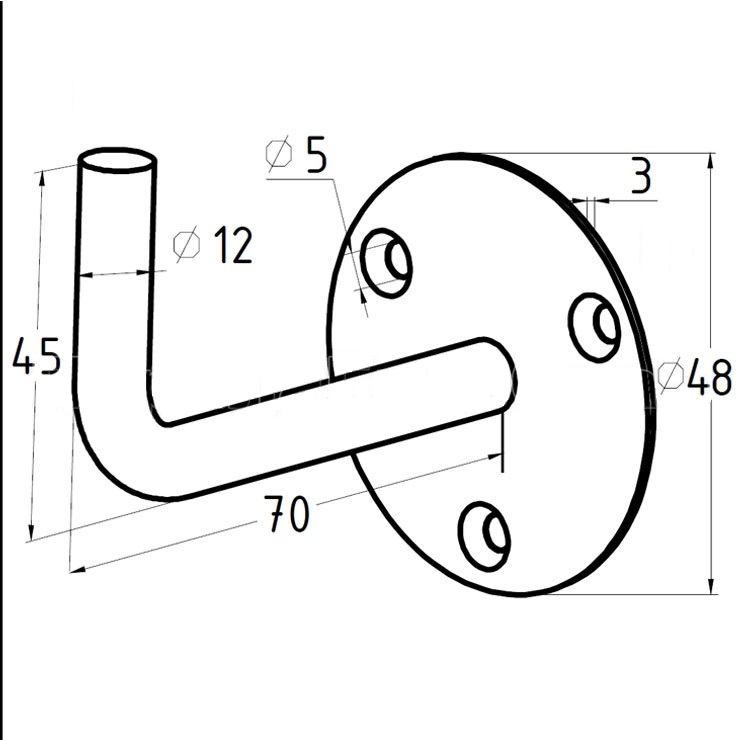 Устанавливается в стену на три самореза (анкера) Ø3 мм. Сам поручень крепится при помощи сварки.